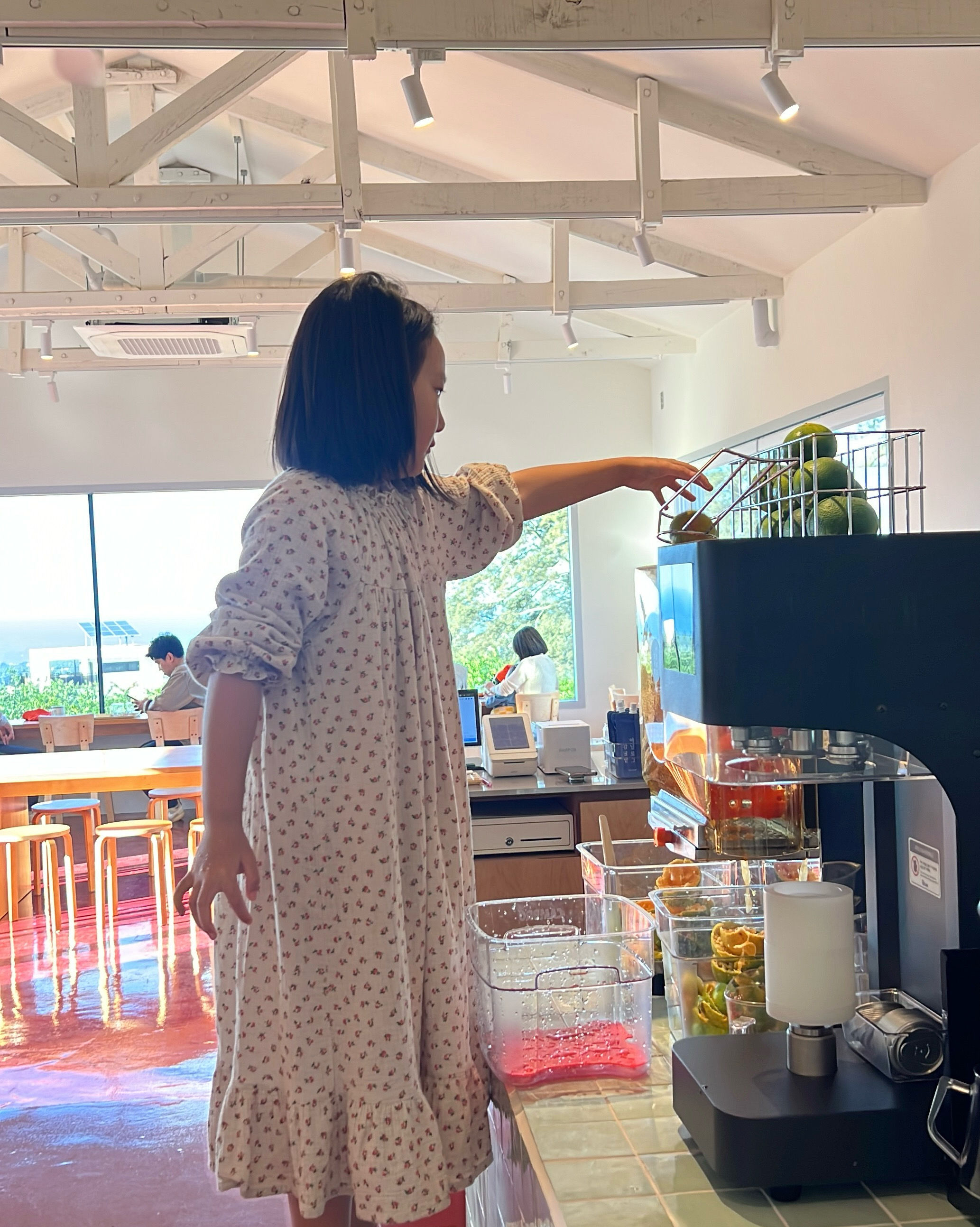 유기농 농장이라 아이와 함께 오기 너무 좋은 곳이네요~ 제주도를 한 눈에 담은 뷰가 정말 예쁘고 아날로그라는 감성 그 자체 ~ 사진 맛집이네요. 매장도 깨끗해서 아이와 활동하기 좋은 장소네요~ 감귤청 만들기 체험하고 싶었는데 시간관계상 감귤착츱만했어요~ 감귤착츱의 맛은 건강하고 싱그러운 자연의 맛~ 이곳 착츱기로 짠 감귤주스는 매일 아침 마시고 싶네요~ ^^