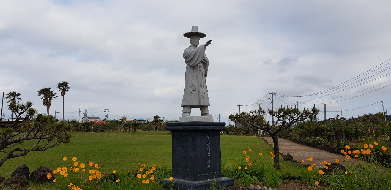 제주시 한경면 용수리 해안은 성 김대건 안드레아 신부가 중국 상해에서 출발해 서해로 귀국하다가 표착한 곳이다. 김대건 신부는 한국인 최초로 상해에서 사제품을 받았는데, 라파엘 호를 타고 귀국하던 중 큰 폭풍우를 만나 표류하다가 용수리 해안으로 오게 됐다고 한다. 이후 경기도 용인에서 사목 활동을 하다가 순교하였는데, 이 선교 열정과 순교 정신을 기리기 위해 용수리 포구를 성지로 선포하고 기념 성당과 기념관, 라파엘 호를 복원해 전시하고 있다. 올레길 12코스와 13코스의 연결지점인 용수 포구에 있어 천주교 신자가 아니더라도 한 번쯤 들러보기 좋은 곳이다.