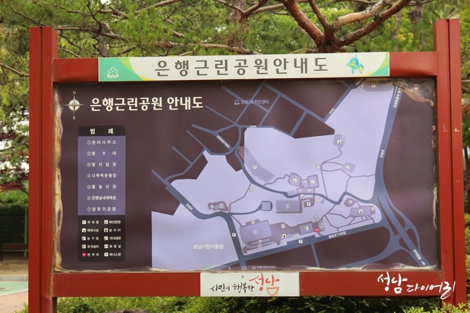 은행공원은 경기도 성남시 중원구 순환로에 있는 근린공원으로 면적은 200,832㎡이다. 기존 지형을 이용하고 자연 수림대를 보존 및 불법 훼손지에는 시설물을 설치하였다. 다목적 운동장, 배드민턴장, 게이트볼장, 농구장 등 각종 운동 시설과 운동 기구를 설치하여 주민의 건강 증진에 기여하고 있다. 공원 내 수목관찰원, 야생화원 조성으로 어린이, 학생 등 주민들의 자연관찰 학습장으로 활용하고 있으며, 산책로와 그늘 시렁, 정자, 파고라, 야외탁자, 의자, 놀이터, 조합놀이터, 발지압장, 약수터, 자전거보관소 등의 편의 시설이 있어 주민들이 많이 찾는 곳이다.