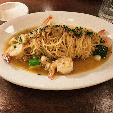 저는 우유와 유제품 알레르기가 있고 아토피 피부염도 있어서 버터와 치즈 없이 파스타를 즐기고 싶었어요. 여기서는 버터와 치즈 없이 맛있는 파스타를 만들었어요. 다만 샐러드 양이 좀 적은 편이었어요.