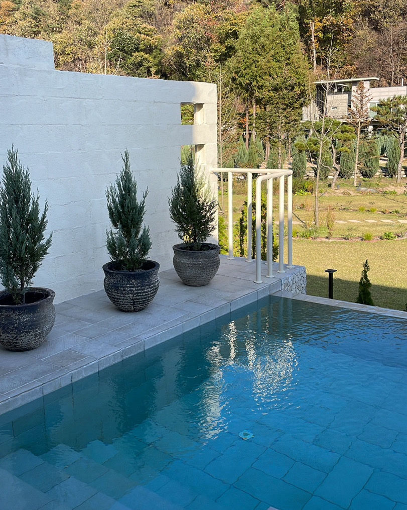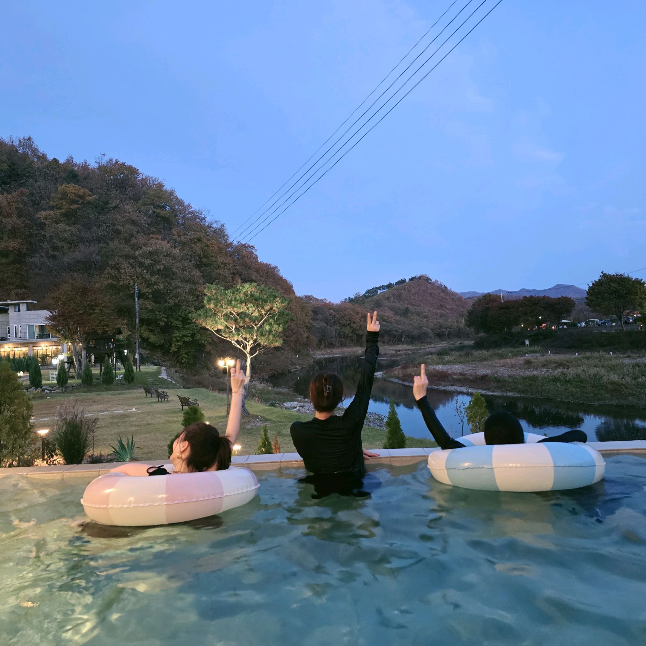 수영장은 야외인데도 관리를 잘 하셔서 그런지 깨끗하고 찝찝함 없이 잘 놀았고, 물 온도는 낮에는 따뜻하고 딱 좋았는데 밤에는 조금 추울 것 같아요