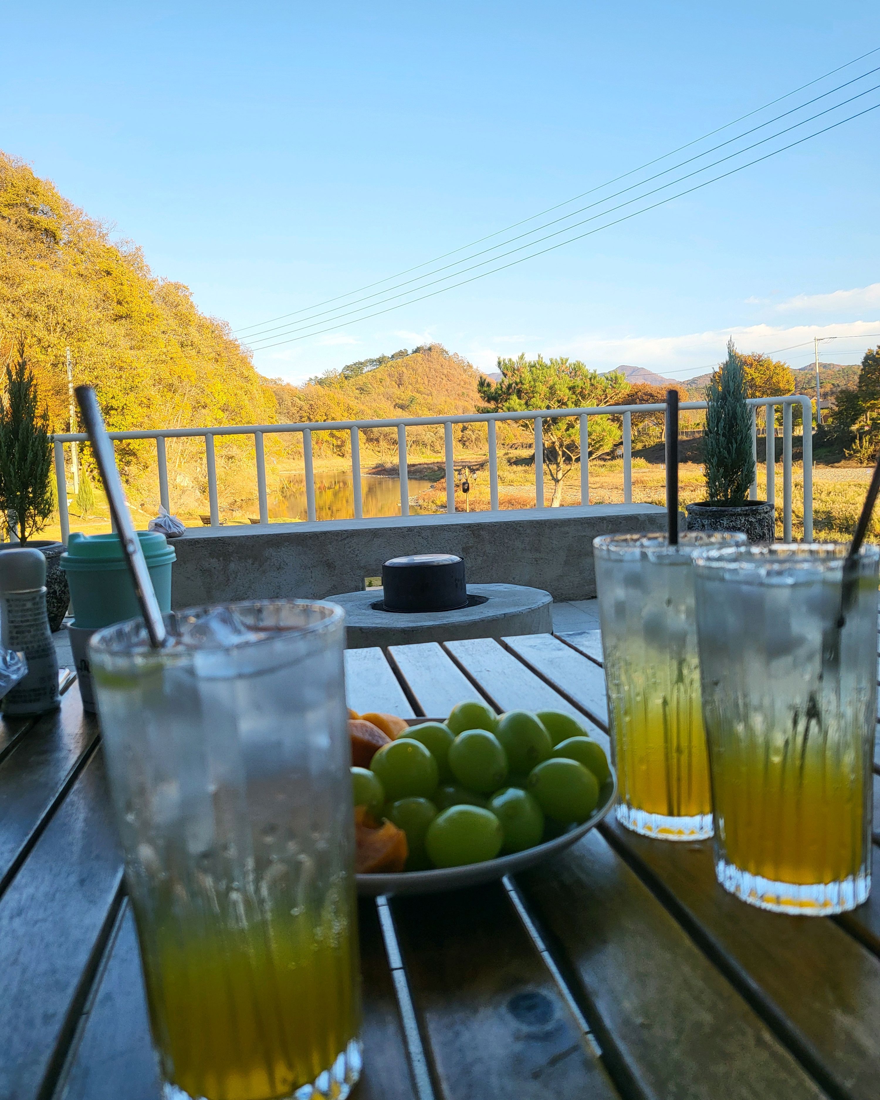 무엇보다 숙소에서 바라보는 풍경이 정말 힐링이였어요 눈으로, 사진으로 담고 온수풀에서 수영도하고 저녁엔 바베큐까지 🤍