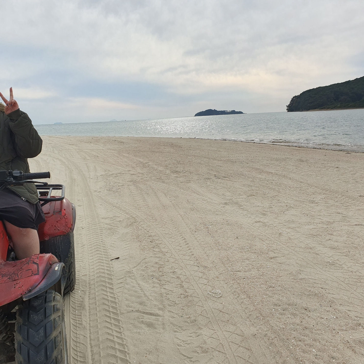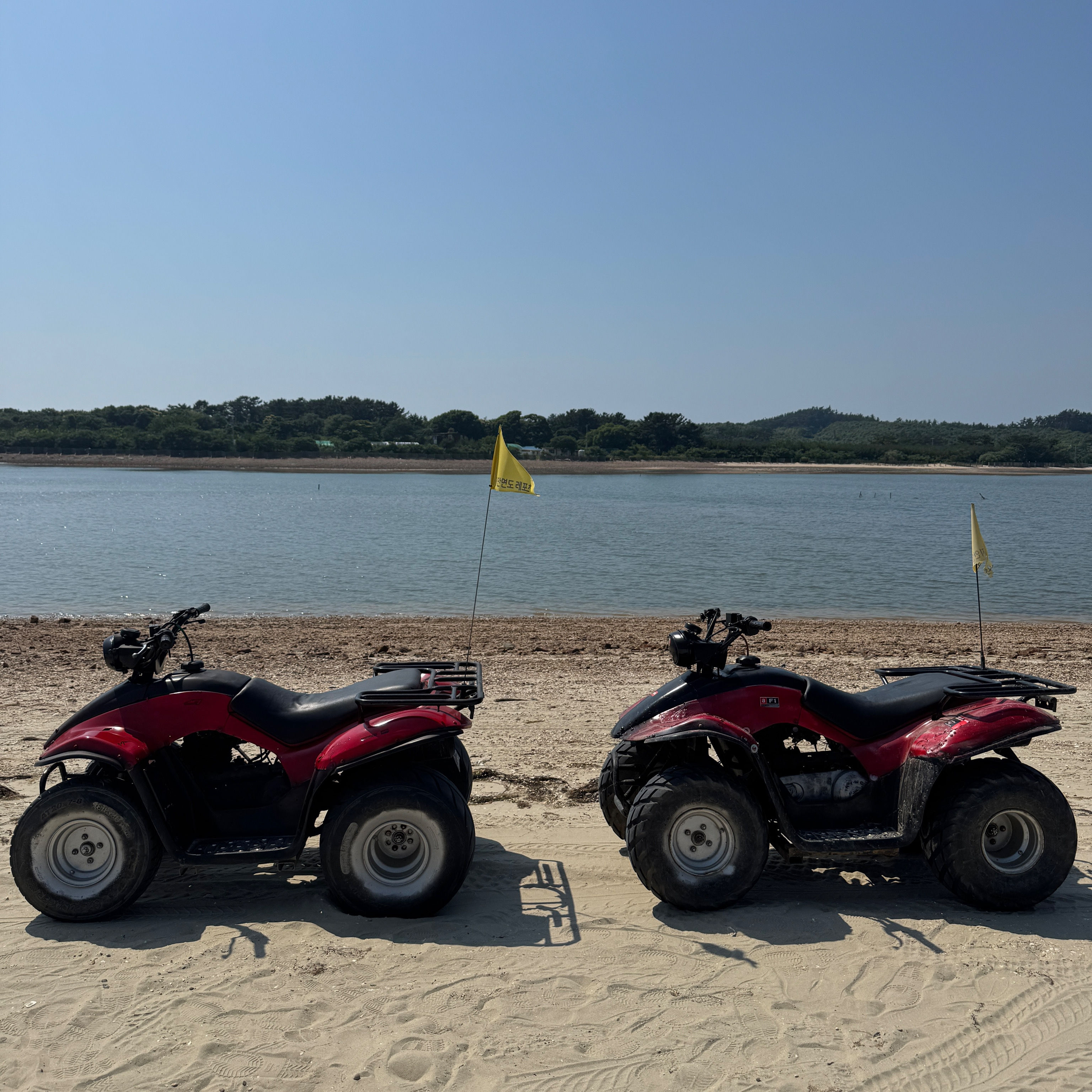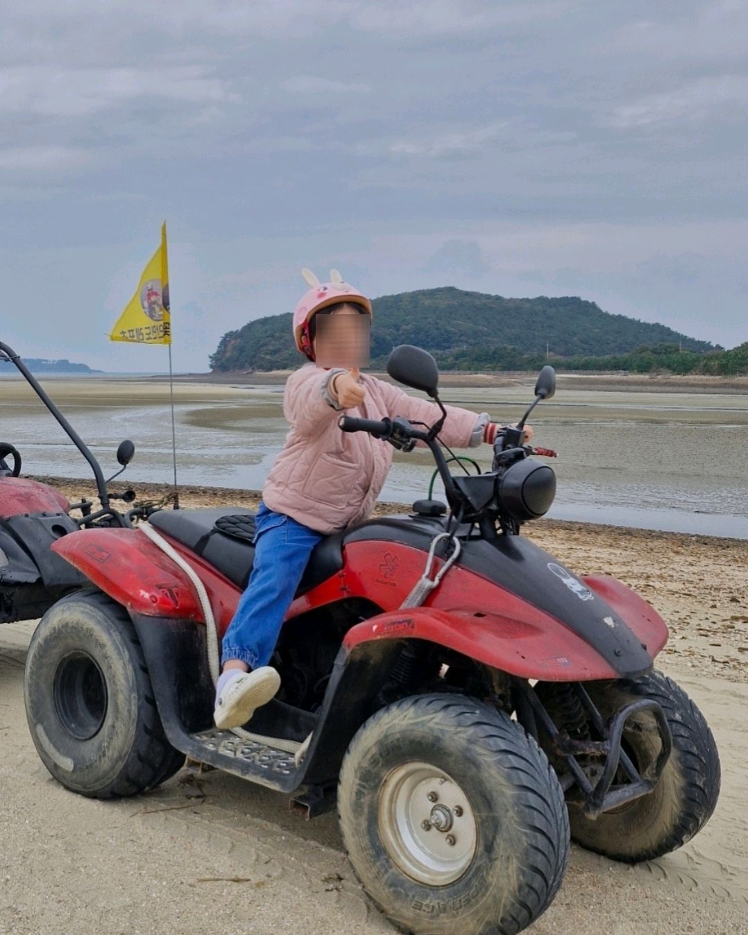 안면도놀러왔다가 꽃지해수욕장을왔는데 ATV가 딱있더라구요! 당일전화해서 바로5분만에 찾아갓더니 일사천리로 코스똭 끌고 데려가주시는데 안면도구경제대로한거같아요^^ 아가들도 너무 신나하네요 의젓하게잘타구