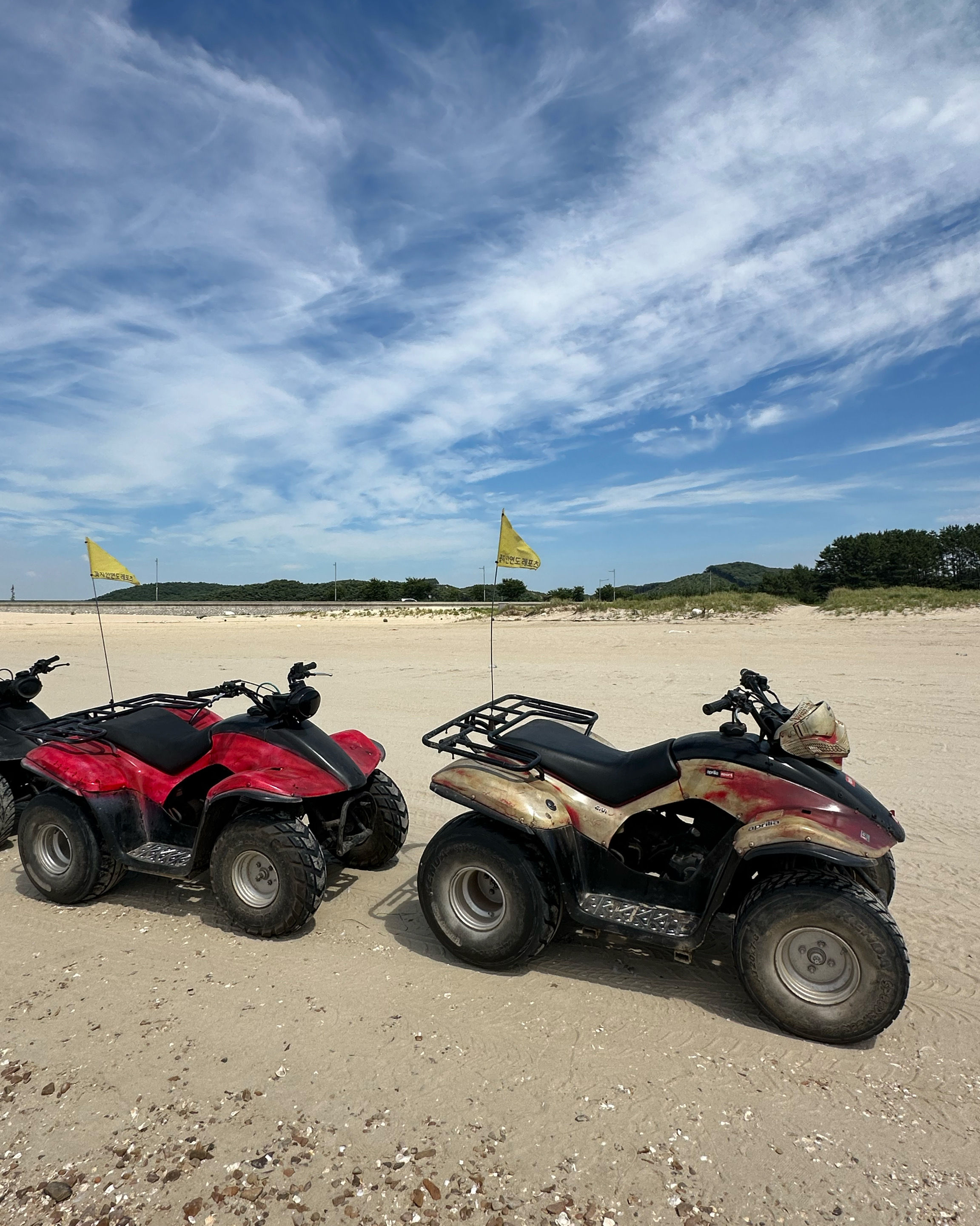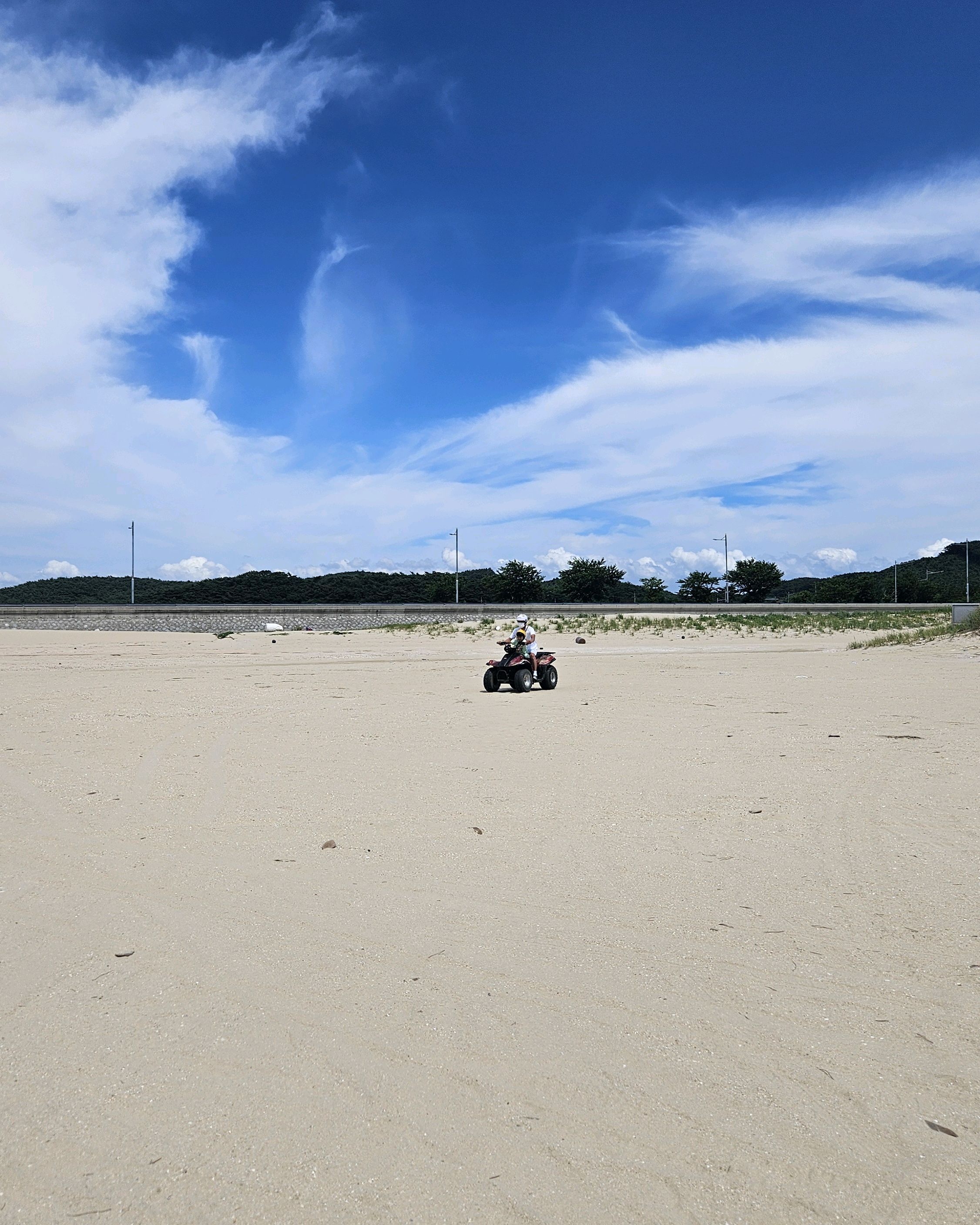 백사장에서 시간 따로 주셔서 자유롭게 타봤는데 처음에 덥다고 망설이던 아들이 너무 재밌다고 싱글벙글했습니다. 가족사진도 먼저 찍어주시겠다고 하셨는데 하늘이랑 Atv 배경으로 예술 인생샷 건졌어요 ㅋㅋㅋ 돌아오는길에 나무 우거진 그늘 길 사이로 돌아와주셨는데 풀냄새가 너무 좋았습니다. 내돈내산 찐후기구요~ 초등아들 너무 좋아했어서 저도 기분좋네요!