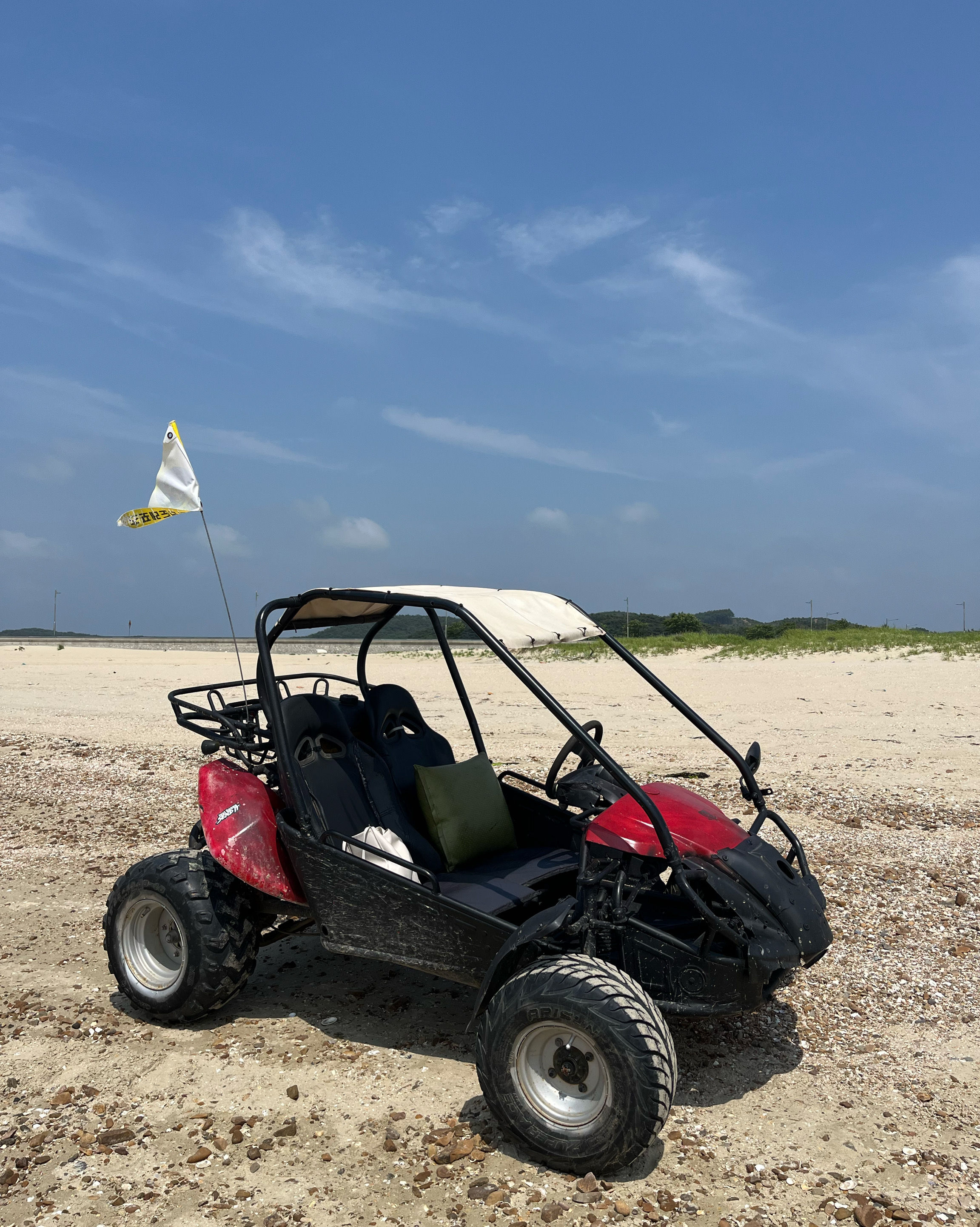 아기와 함께 해변에서 카트 타보고 싶어서 갔어요~