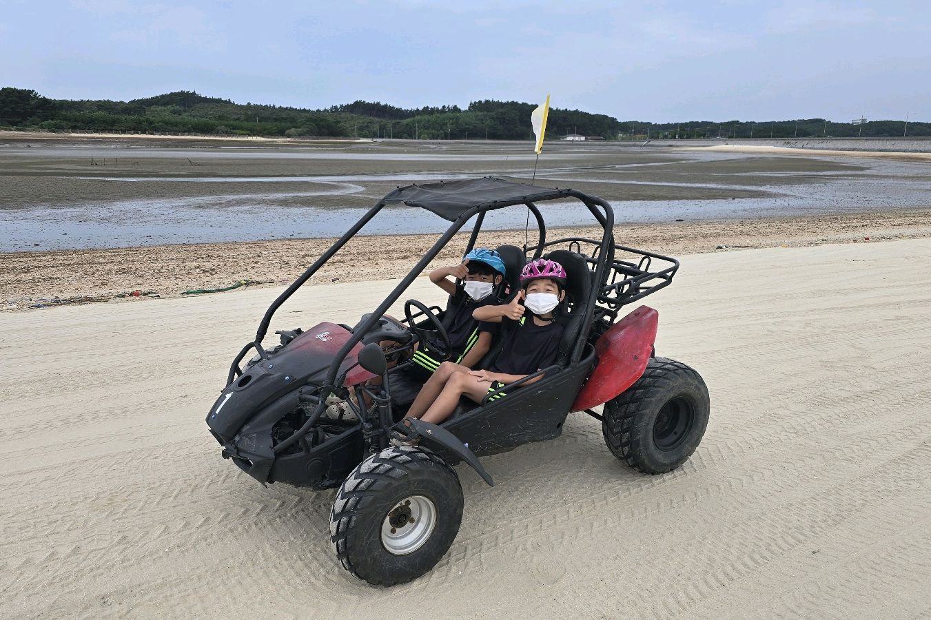 초등아이랑 같이 고카트, ATV 체험했어요. 사장님이 앞장서서 해변까지 안전하게 인솔해주셨네요^^