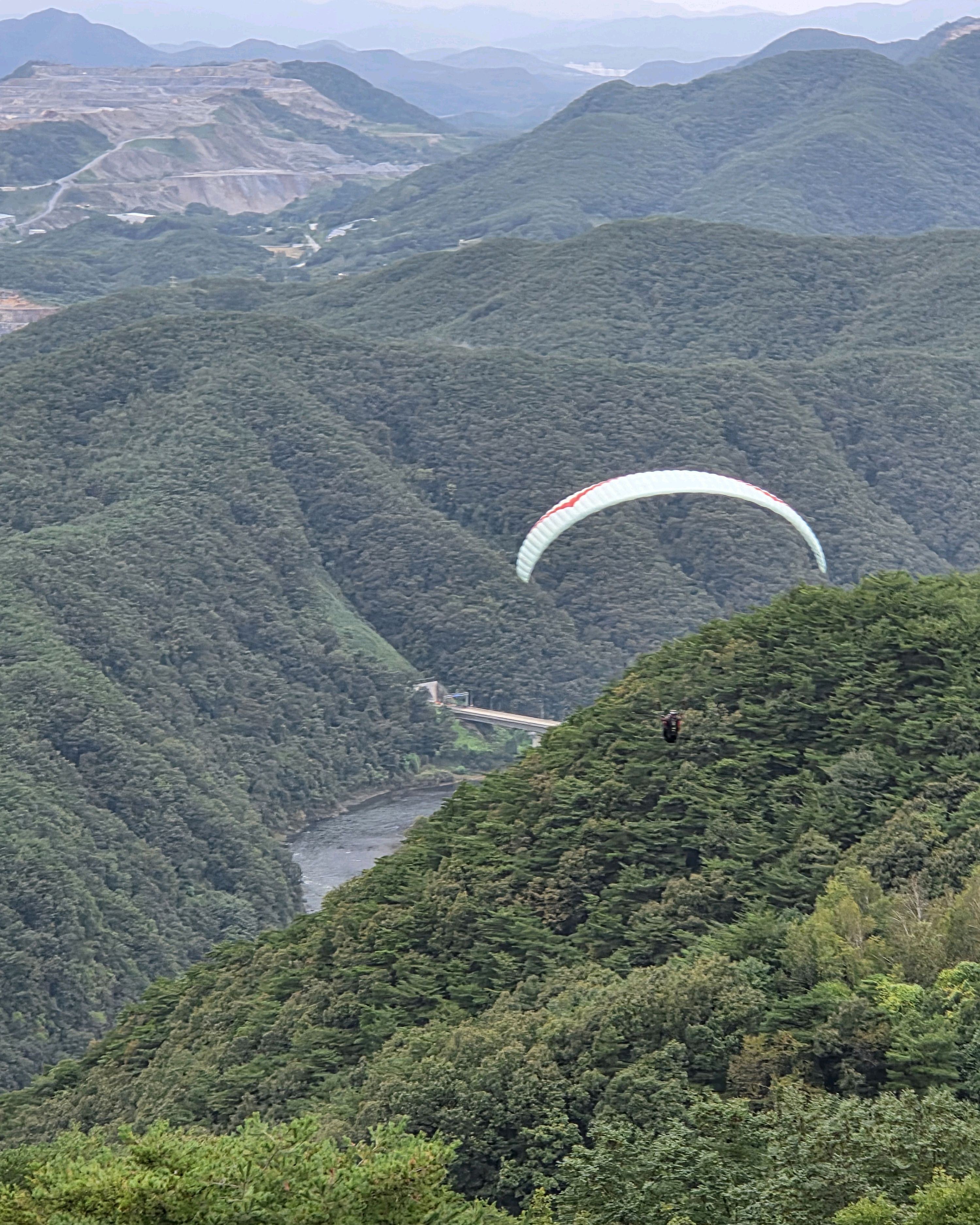 안개낀 풍경에 패러글라이딩 멋졌습니다.