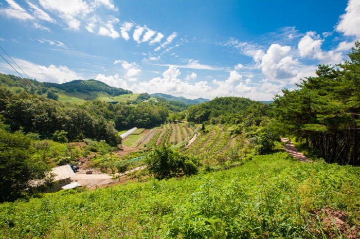 이 지역에는 석회암이 빗물이나 지표의 물에 의해 녹아서 만들어지는 카르스트지형을 볼 수 있다. 평창군 미탄면 율치리에 위치한 돈너미 마을은 과거 돈너미산(768.9m) 주변에 20여 호의 자연부락이 있었으나 모두 대체로 떠나고 현재는 4가구만 남아있는 산골마을이다. 마을이 위치한 해발고도 525~700m 지역에는 넓은 편평한 지역에 돌리네나 우발라(돌리네가 모여서 합쳐진 것)와 같이 움푹 꺼진 지형이 나타나며, 이는 카르스트지형의 전형적인 형태이다. 돈너미 마을은 지금으로부터 약 4억 6천만 년 전에 쌓인 석회암으로 이루어져 있다. 석회암은 따뜻한 열대, 아열대 기후지역의 얕은 바다에서 석회성분(CaCO3)을 만드는 생물의 껍데기가 쌓여 만들어진 암석으로, 퇴적암에 속한다.