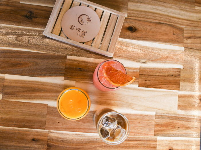 밖 풍경을 보며 힐링할 수 있고, 역과 멀지 안아 좋은 카페 열매달이다.