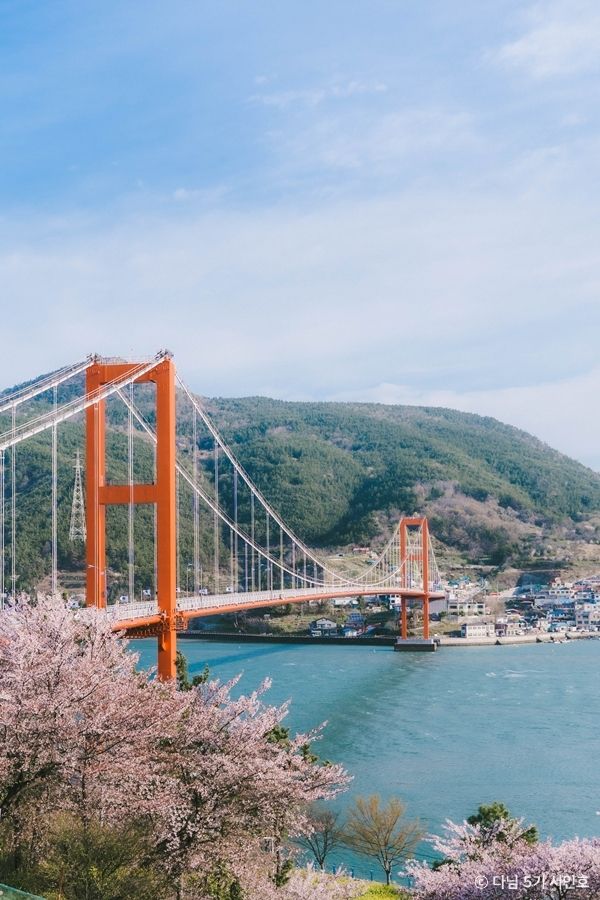 왕지벚꽃길은 남해대교를 지나 충무공 이순신의 사당인 충렬사가 있는 노량삼거리에서 문의리까지 설천로를 따라 이어진 약 5km 구간의 벚꽃길을 가리킨다. 이 벚꽃길에는 무려 1,170여 그루의 왕벚나무가 해안선을 따라 벚꽃터널을 이룬다. 벚꽃이 떨어질 무렵에는 유채꽃이 만발해 따스한 봄의 정취를 마음껏 즐길 수 있다. 노란 유채꽃과 핑크빛 벚꽃이 어우러진 풍경 너머 푸른 바다와 주황색 남해대교가 상큼한 색의 조화를 이룬다. 산자락을 오르며 흐드러진 벚꽃터널을 즐기고 싶다면 오른쪽 도로를, 남해대교와 벚꽃을 함께 즐기고 싶다면 해안 도로를 따라 드라이브 코스를 선택하면 된다. 왕지벚꽃길 끝자락은 남해의 인기 여행지인 상상 양떼목장 편백숲으로 이어진다.