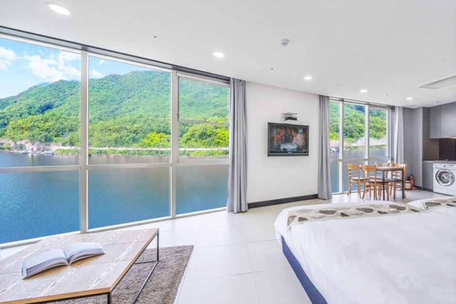 서울 강남에서 30분거리 호캉스 가능한 가평 소재 리버뷰 수상레저 펜션이다. 전 객실 창 너머로 청정호수가 펼쳐지는 리버뷰이다. 청평호반 감성 가득한 퍼핀스 카페에서 음료와 주류 주문 가능하다. 선상 야외 데크에서 BBQ 파티가 열린다. 빔프로젝트, 스크린, 노래방, 음향시설을 갖추고 있어 소모임행사나 워크숍이 가능하다. 엘리베이터가 설치되어 있고 오락실, 노래방이 있다. 하절기에 수상 레저 체험이 가능하다.