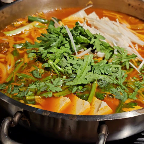 소고기버섯전골로 주문했고 전골 데워지는데 조금걸려서 냄비먼저나오고 그다음 밑반찬과 부침개 김치 등 밥들이 셋팅되었어요