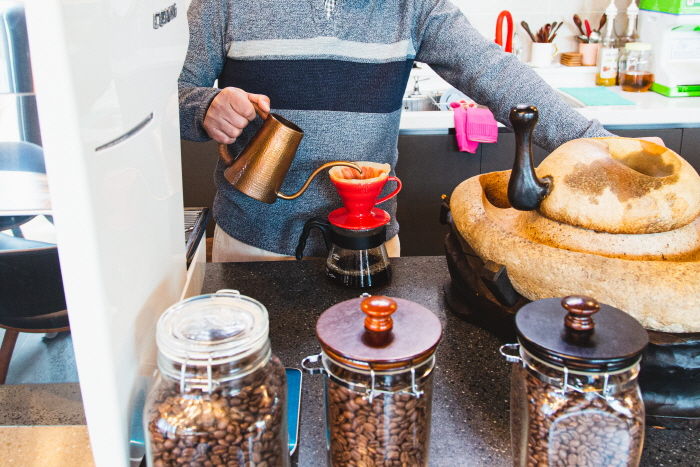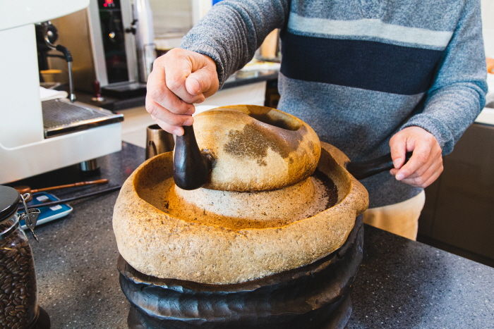 친절한 사장님께선 이것저것 물어보는데도 아주 친절하게 답을 해주셨고 맷돌로 원두를 직접 갈아 볼 수도 있게 해주셔서 감사했어요~