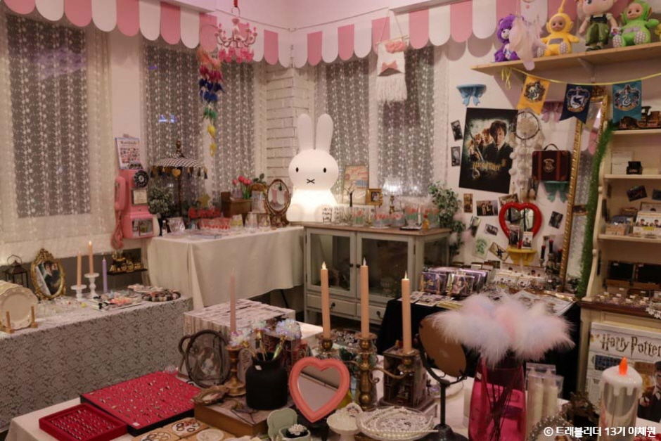 부산 광안리 근처에 있는 소품샵이다. 무지개 컬러로 예쁘게 꾸며진 계단을 올라가면 해리포터와 세일러문 등의 포스터가 반겨 주는 곳이다. 애니메이션 포스터를 비롯한 그림카드, 인형들을 판매한다. 특히 헬로키티 관련 용품과 버터맥주를 비롯해 지팡이, 빗자루, 가운, 3D 퍼즐 등 다양한 해리포터 상품들이 구비되어 있다. 작지만 다양한 상품들을 볼 수 있다.