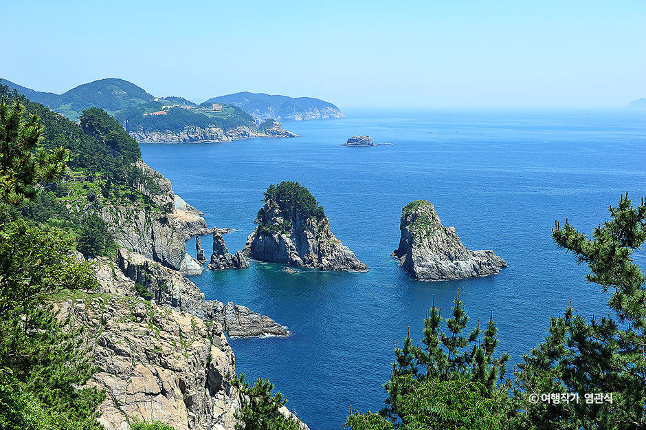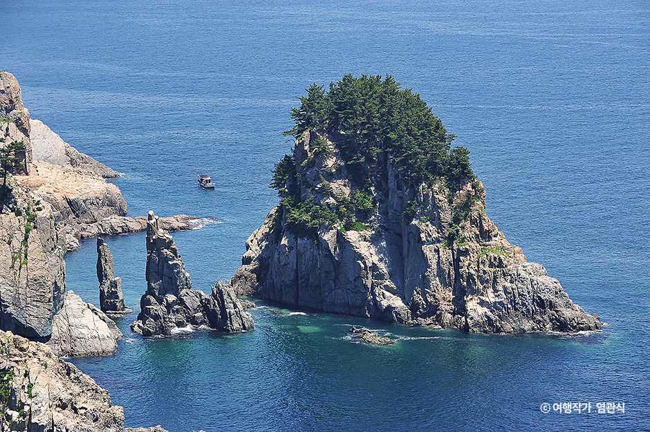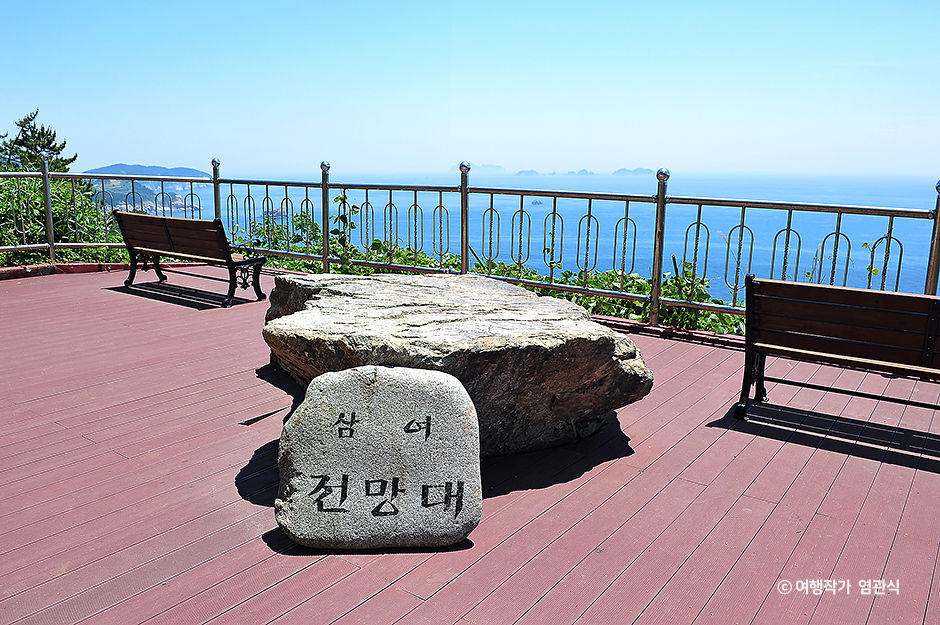 욕지도는 연화 열도 중에 가장 큰 섬으로 등산과 낚시를 즐기러 찾는 이들이 많은 섬이다. 큰 섬이라 섬으로 차를 가져갈 수 있어 편리하다. 차를 직접 운전하거나, 섬 내 마을버스를 이용하거나 카트를 대여해서 섬의 일주 도로를 달리면 아름다운 욕지도의 해안 절경에 속도를 낼 수가 없다. 욕지도 자체가 바위섬이라 해안가 대부분이 기암괴석들과 절벽으로 이뤄져 있고, 배경으로는 아름다운 물빛 바다가 펼쳐진다. 그 뒤로 바다 위에 다양한 양식장들이 점점이 떠 있고, 더 멀리는 작은 바위섬에서부터 큰 섬들까지 각양각색의 섬들이 펼쳐져 보이는 이들의 탄성이 절로 터져 나온다. 욕지도 내에는 일주 도로를 따라 여러 군데 전망대가 있지만, 그중에서 가장 유명하고 가장 아름답기로 손꼽히는 곳이 바로 삼여 전망대이다. 삼여는 해안절벽 바로 앞에 붙어 있는 3개의 갯바위를 가리키는데, 이 바위에는 슬픈 전설이 있다. 용왕의 세 딸들이 900년 묵은 이무기가 변신한 젊은 총각을 사모하자, 용왕이 노하여 딸들을 모두 바위로 만들었다고 한다. 자신을 사랑하던 여인들이 바위로 변한 것을 안 젊은이 또한 용왕을 미워하여 산을 밀어내어 두 개의 섬으로 바다를 막아 버렸다고 한다. 이곳 풍경은 너무도 아름다워 다들 오랜 시간 전망대를 떠날 줄 모른다.