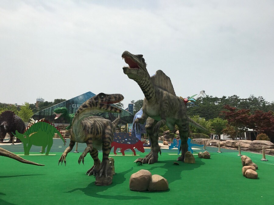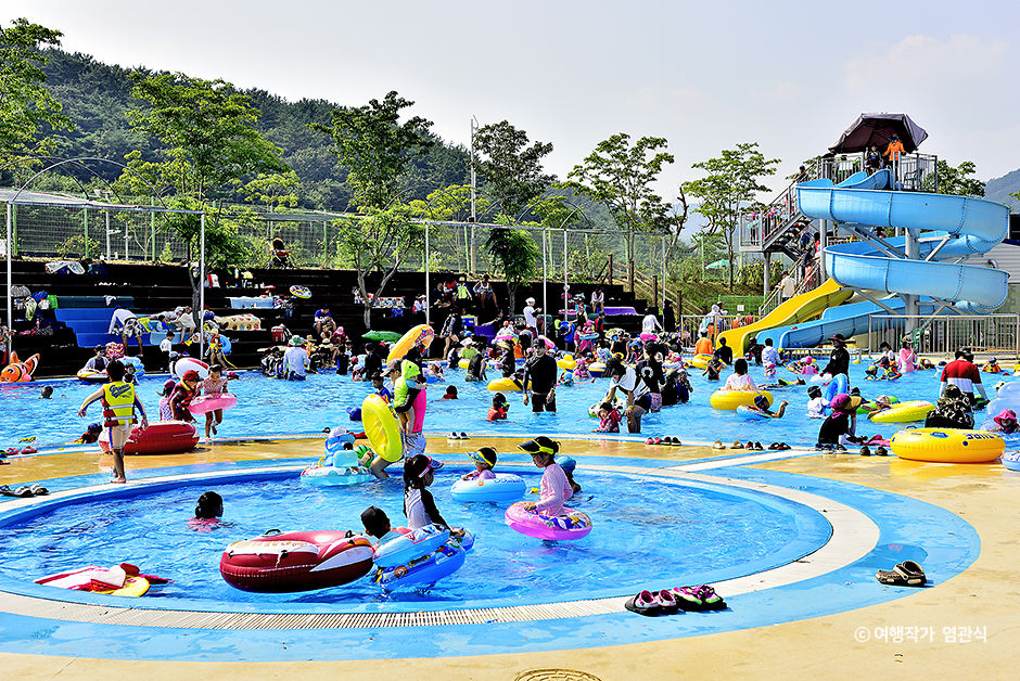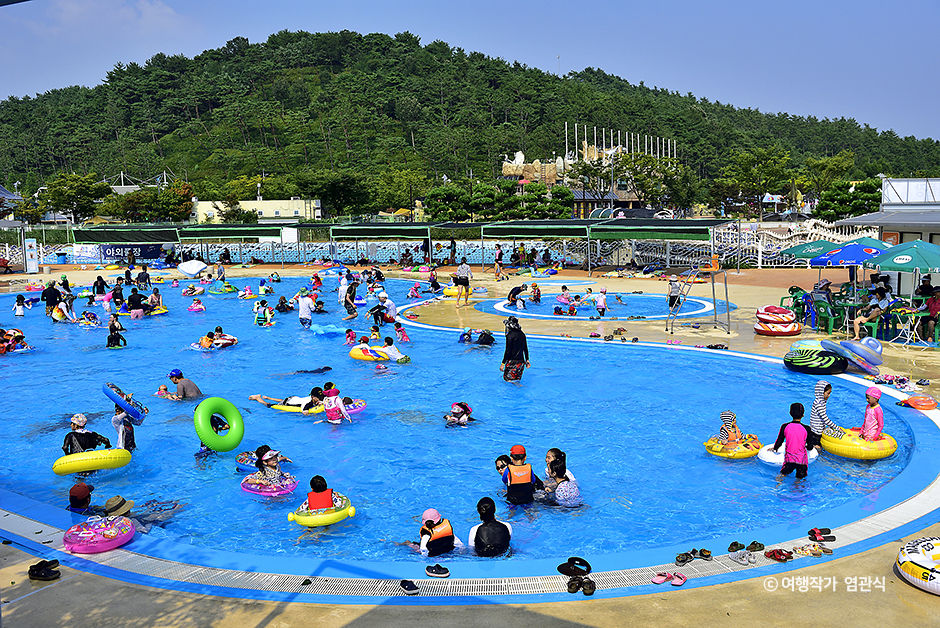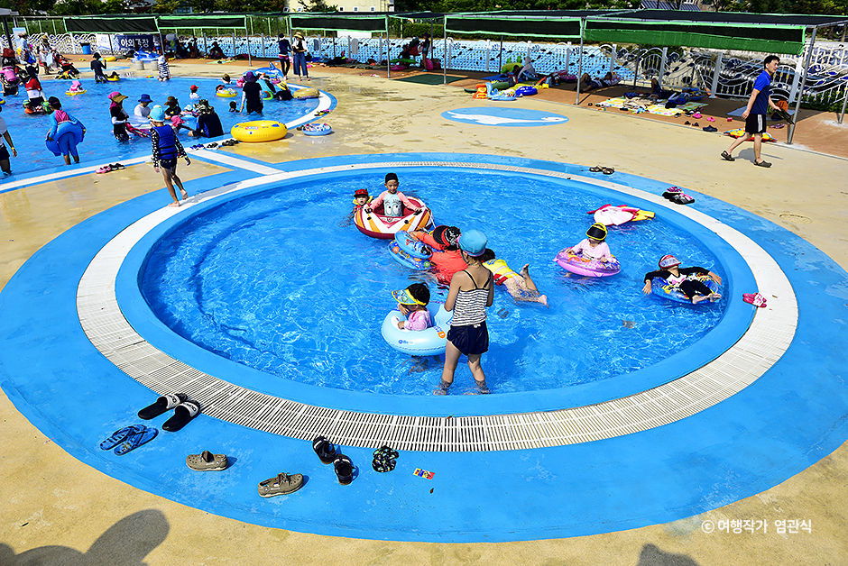 당항포랜드는 고성 공룡엑스포를 위해 대규모로 구성된 관광지로써 다양한 볼거리와 즐길 거리를 갖추고 있는 물놀이 시설이다. 사계절 언제든 방문해도 좋겠으나, 아무래도 여름 휴가철에 가장 많이 찾게 되는데, 이곳에서 시원한 물놀이를 즐길 수 있어 가족 단위 피서객들에게 인기가 높다. 당항포관광지 입장료를 내 거나 오토캠핑장을 이용하면 대부분의 관람 시설은 무료이나, 일부 놀이기구와 야외풀장은 유료로 이용할 수 있다. 야외 풀장은 여름철 1개월간 한시적으로 운영되는데 2바퀴를 회전하며 내려오는 워터 슬라이드와 어린이용 미끄럼틀이 있고, 수심이 1m와 0.5m로 두 개로 나뉘어 있어서 가족 단위로 캠핑장을 찾은 경우 반나절이나 하루 정도를 이곳에서 물놀이로 충분히 즐길 수 있다. 주변에 공룡 관련 전시와 놀이공원, 박물관 등이 다양하여 휴가 계획을 알차게 세울 수 있는 곳이다. 수영복, 수영모, 구명조끼 등이 대여 가능하여, 준비하지 못했더라고 물놀이를 할 수 있도록 돕고 있다. 풀장 옆으로는 스탠드식 그늘막이 잘 설치되어 있고, 파라솔과 테이블도 준비되어 있어 휴식을 취하기 좋으나, 여름철에는 찾는 이들이 많아 일찍 입장하지 않으면 자리를 잡기 어려울 수도 있다. 풀장 내의 매점과 스낵바에서 간식과 음료 등의 구매가 가능하며, 외부음식물 반입도 가능하다.