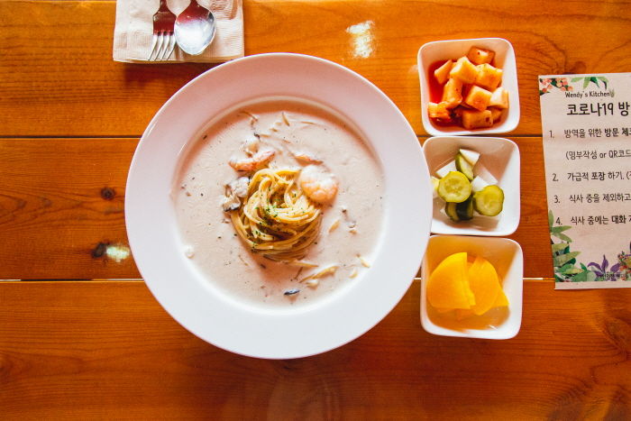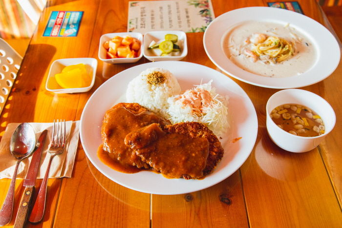 직접 재배한 허브들로 맛을 낸 돈가스와 파스타, 치킨까스를 판매하는 양식당이다. 휘닉스평창 근처에서 양식이 먹고싶을때 방문하면 좋을 식당이다. 새우크림돈가스가 느끼하지 않고 맛있는 곳이다.