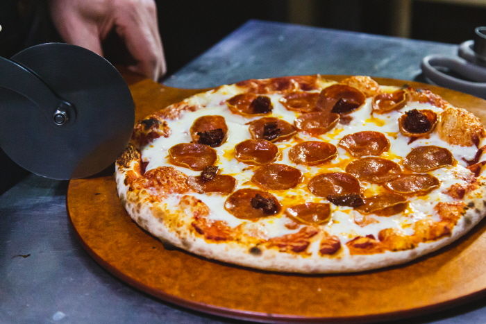음식은 그렇게 맛있지 않았어요. 서비스가 느렸고 피자만 주문했어요. 친구 피자가 먼저 나왔어요. 저희도 같은 피자를 주문했는데, 왠지 제 피자는 15분 정도 더 걸렸어요. 그 사이에 친구는 피자를 반이나 먹어버렸네요. 하하.