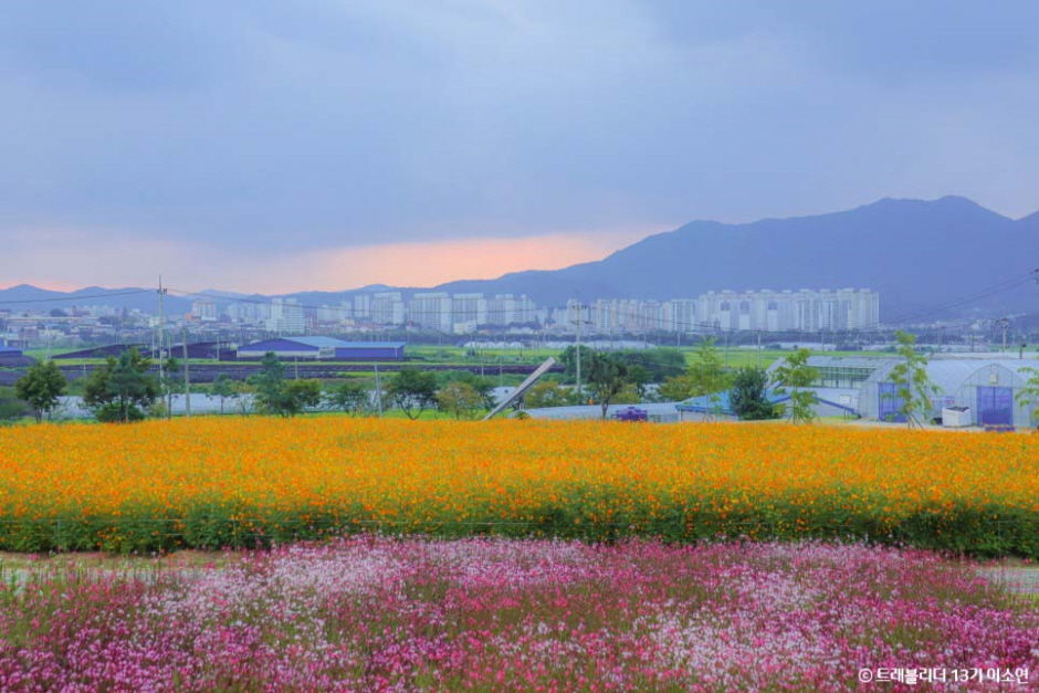 충북 증평군 농업기술센터가 증평읍 사곡리에 조성한 테마파크다. 화초 9종 5만 포기, 왕벚꽃 등 수목 8종 180그루, 영산홍 등 관목 4종 7천600 그루가 식재되어 주민 휴식 공간 역할을 하고 있다. 특히 꽃양귀비와 수레국화가 만개하는 시기에는 넓은 들판에 활짝 핀 꽃들이 장관을 이룬다. 증평농업기술센터 주차장으로 내비게이션 검색을 하면 찾기 쉽다.