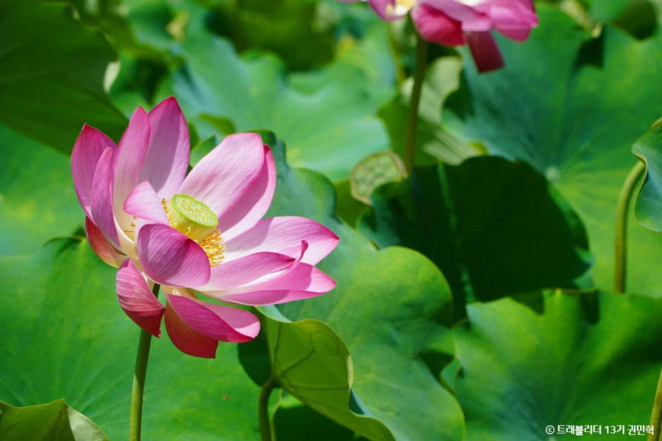 충북 보은군 속리산면 천연기념물인 정이품송 맞은편에 조성된 연꽃단지이다. 연꽃의 계절이 되면 백련과 수련, 가시연꽃, 물양귀비 등 아름다운 연꽃이 장관을 이룬다. 편안하게 관찰할 수 있도록 관찰로가 조성되어 있다. 어린이를 위한 교육 장소 및 가족 단위 피크닉 장소로 적합하다. 주변에는 속리산 국립공원, 법주사, 솔향공원과 예쁜 카페들도 있고, 주차장도 이용할 수 있다.