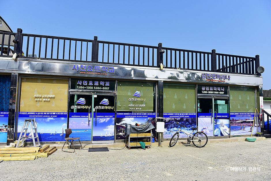 삼천포마리나는 리조트형 시설로 펜션에서부터 다양한 해양레포츠는 물론 요트 계류장과 요트학교까지 갖추고 있는 해양레저 전문 시설이다. 입구에는 다양한 보트와 요트들이 정박해 있고, 여름철이면 수상스키를 시작으로 바나나 보트, 땅콩 보트, 웨이크 보드, 보트 투어 등을 즐기는 가족 단위와 수련회 및 학생단체 MT 등의 방문이 많다. 삼천포에서도 이곳은 특히나 파도가 잔잔하면서 물이 맑은 청정해역으로 안전한 해양레저를 즐기기에 안성맞춤이다. 잔잔한 바다에 비해 바람은 시원스러워, 요트 항해에 적합하여 전문 요트학교가 운영 중이고, 관련 학과 학생들은 물론 일반인 대상으로도 다양한 단계의 교육을 진행한다. 기본 교육 수료 시에는 요트 대여해서 자유롭게 일대에서 세일링 및 선상 파티를 즐길 수 있다. 또한 넓은 계류장을 갖추고 있어서 요트 보관 및 관리를 돕는 서비스도 제공하고 있다. 이곳 실안해안도로 주변은 전국에서도 일몰이 아름다운 곳으로 손꼽히는 곳으로 일몰 무렵에 바다 위의 요트나 보트에서 바라보는 바다의 일몰 풍광은 인상적인 추억거리가 된다.
