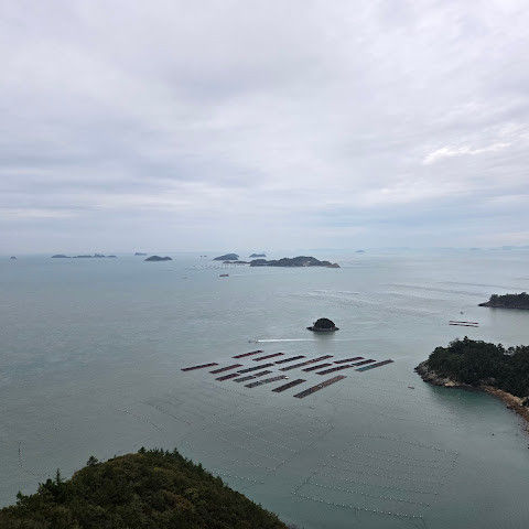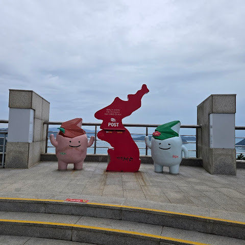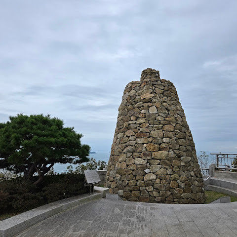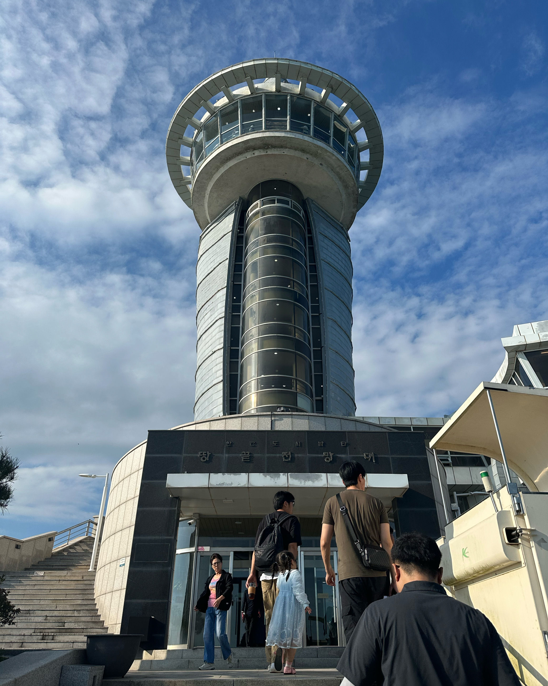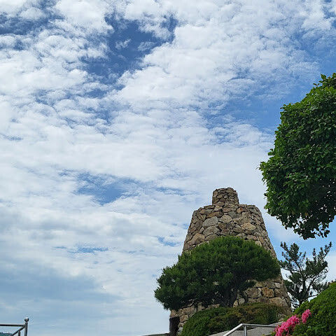 수년전에 왔을 때는 입장권 1,000원을 냈었는데(해남사랑상품권으로 돌려줌) 이제는 무료개방이네요. 해남을 상징하는 휏불 모양의 전망대가 9층 높이로 우뚝 솟아있고 엘리베이터를 타면 카페가 있는 3층과 9층에서 내릴 수 있어요. 우리는 바로 9층으로...망원경 2대가 설치되있고 멀리 섬들을 볼 수 있는데 사람 많아서 내 차례는 오지않는다는...앞바다는 양식장들이 많고 배가 자주 지나다녀요. 전망대 앞으로는 땅끝 유래에 대해서 새겨진 비도 보이고 돌을 쌓아서 만든 봉수대, 한반도 모양의 느린우체통, 계단 옆에는 장애인 모노레일카도 있어요. 멀리 상어와 문어로 장식된 자연사 박물관까지 경치 좋네요. 전망대에서 약 500m를 내려가면 땅끝탑비가 나오는데 굉장히 경사져서 다시 모노레일 타고 내려가서 가는거 추천!