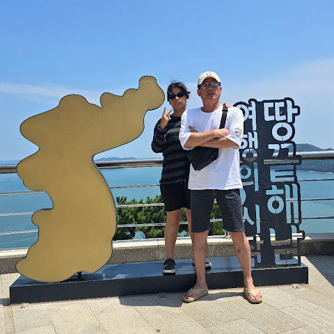 우리나라 땅끝 마을 해남에 위치한 전망대에 올랐습니다. 3면이 바다이니 앞에 펼쳐진 바다를 바라 봅니다. 멋진 풍경을 보며 대한민국의 건강을