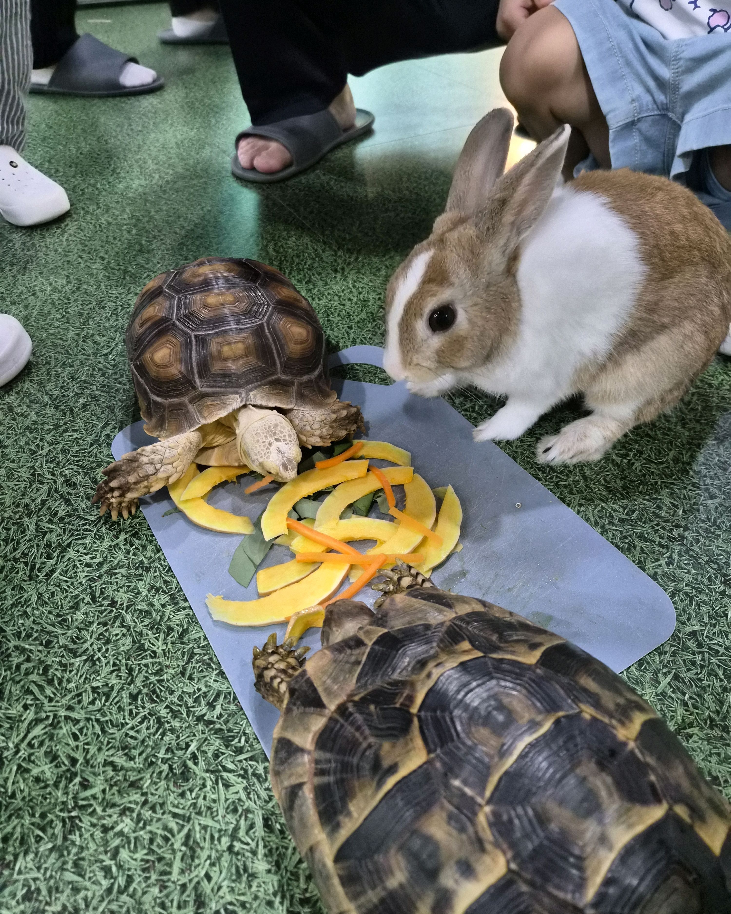 비가 와서 아이들을 데리고 갈 곳이 마땅찮았는데, 시내에 이런 곳이 있어서 좋네요. 강아지 고양이와 스킨쉽도 가능하고, 저렴한 가격에 작은 동물들을 볼 수 있어 좋았어요~