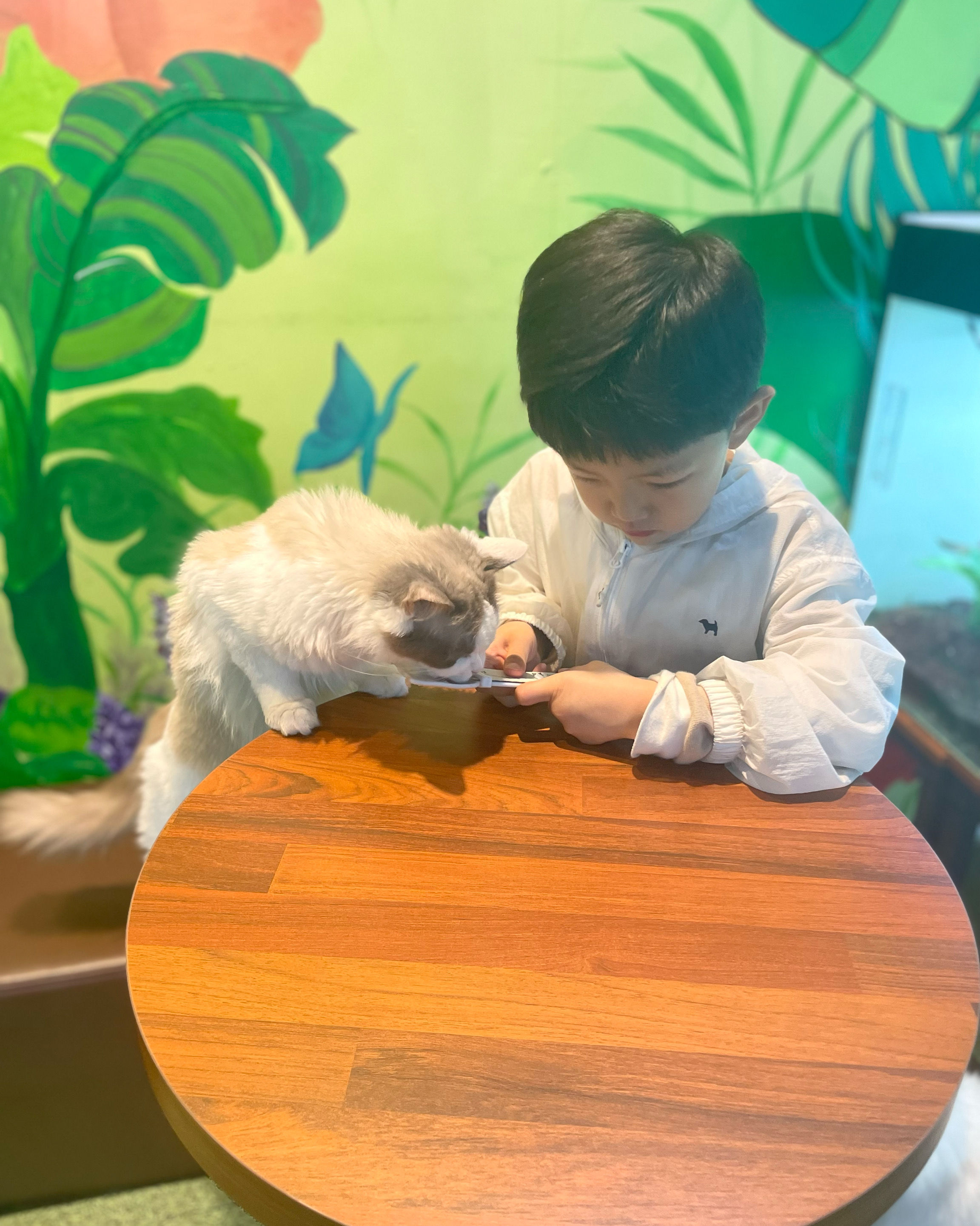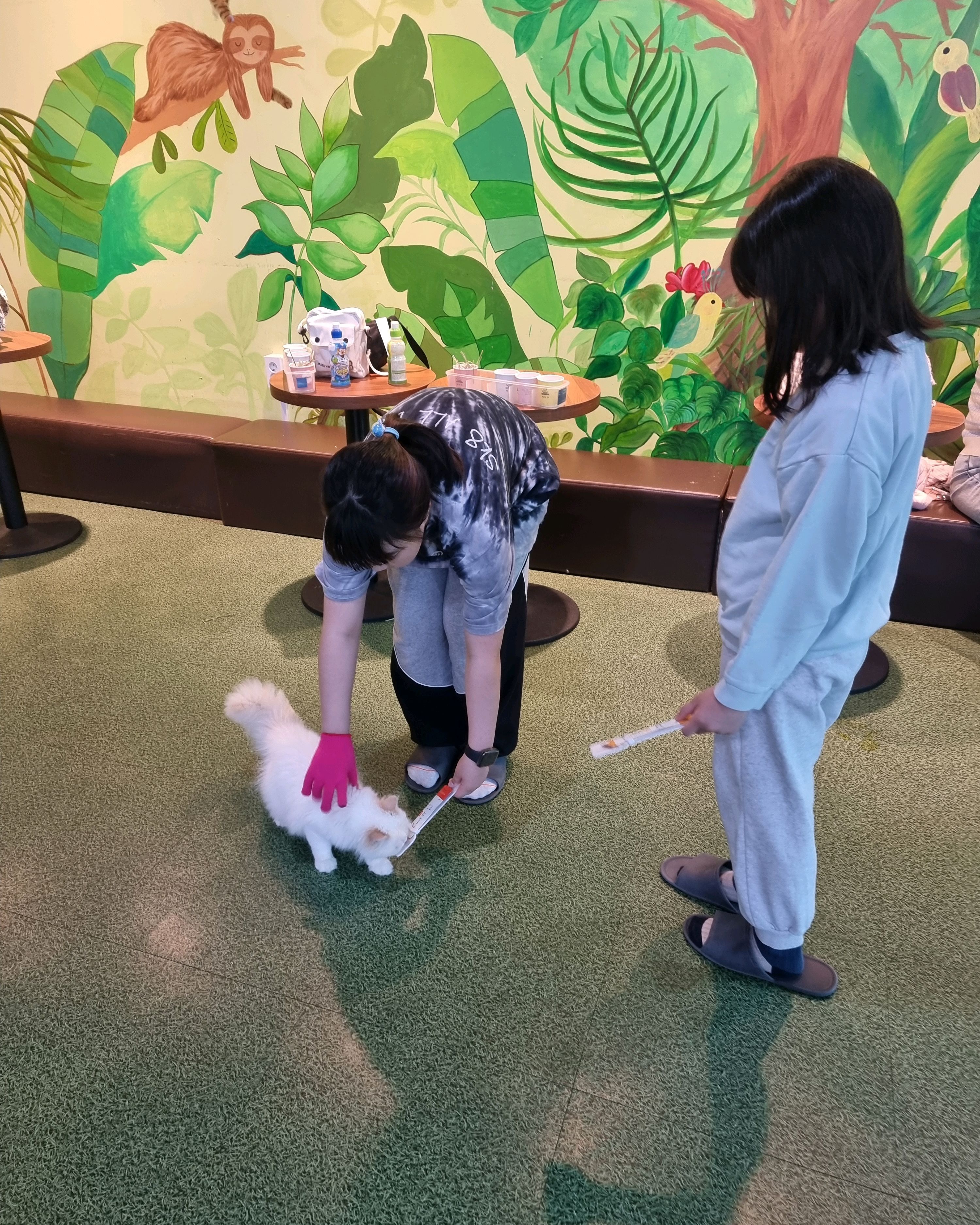 강아지와 고양이 친구들이 정말 잘 관리되어 있고, 성격도 순해서 아이들도 무서워하지 않고 잘 놀았습니다. 특히 간식 체험은 아이들이 가장 좋아했던 시간이에요!