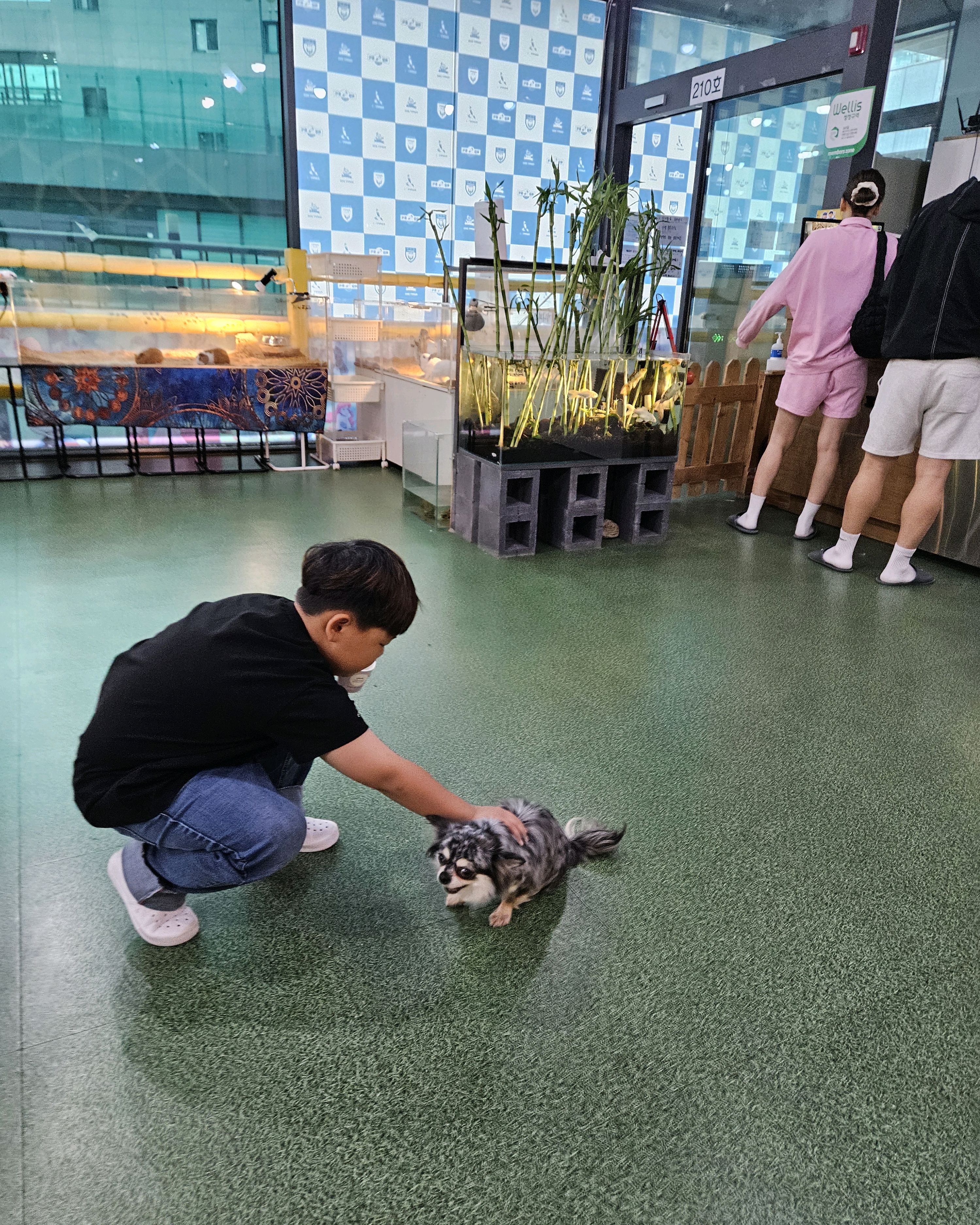 두번째방문인데 강아지. 고양이 뿐만 아니라 거북이. 뱀 등 직접 만져 볼 수 있고 강아지도 실제로 할 수 있는 게 설명되어있어서 좋아요예요. 아이들이 친숙하게 보기가 편했어요. 그리고 실제로 보기 힘든 뱀도 있고 아이들에게즐거운 추억이되었고 자주올것같아요