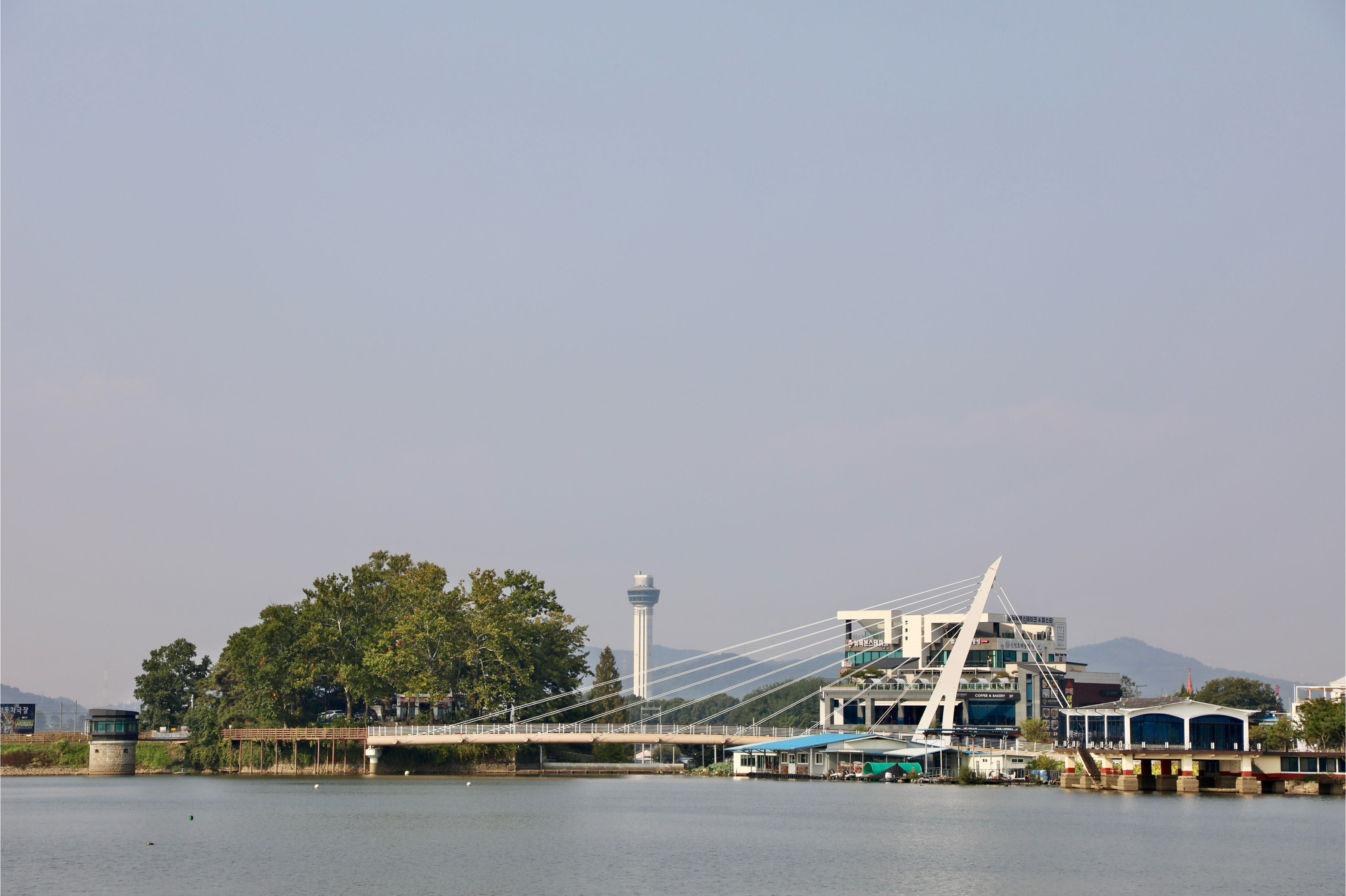 왼쪽으론 신정호정원, 오른쪽으론 신정호.