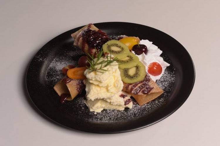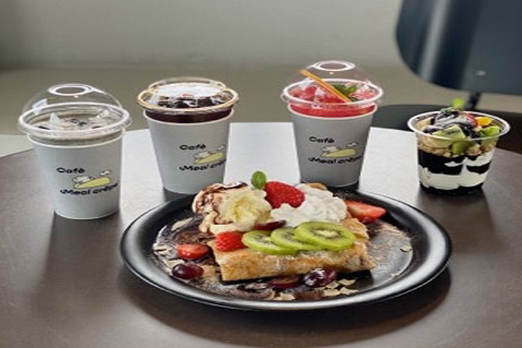 주차장이 넓고 야외공간도 넓다. 크레페 메뉴로는 뉴욕치즈 크레페, 커스터드 망고 크레페, 뉴텔라 바나나 크레페, 복숭아 요구르트 크레페 등이 있고, 그 밖에 커피를 포함한 다양한 음료와 디저트가 준비돼 있다. |