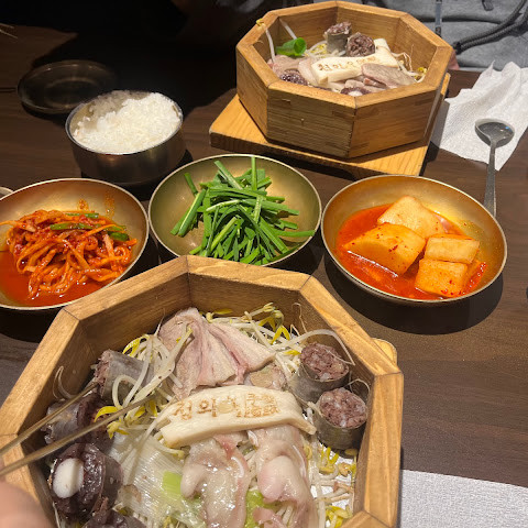 오후 12시 전에 도착하세요. 먼저 기계에서 등록해야 합니다. 외국인은 전화나 이메일로 등록할 수 있습니다. 저는 이메일로 등록했습니다. 대기 시간은 약 30분 정도였습니다(제 앞에 26팀이 기다리고 있었습니다). 회전율은 꽤 빨랐습니다. 입장 후 테이블에 있는 메뉴의 QR 코드를 사용하여 주문했습니다. 저는 히노키 정식(밥, 순대국, 콩나물과 고기가 들어간 순대 찜 바구니)을 주문했습니다. 밥은 맛있었습니다. 순대국도 아주 따뜻하고 맛있었습니다(새우장으로 간을 조절하는 것을 잊지 마세요). 사장님은 매우 친절하셨고, 필요에 따라 가져갈 수 있도록 턱받이를 제공했습니다. 반찬이 부족하면 리필할 수 있습니다. 순대는 국이든 찜이든 모두 독특했습니다. 국물이 너무 짜지 않아서 소금과 후추를 넣을 수 있었습니다. 찜 버전은 한국식 식초 소스에 찍어 먹을 수 있는데, 느끼함을 해소하는 좋은 방법입니다. 한국식 식초 소스의 매력을 처음 알게 됐어요. 추운 겨울날 한 그릇 먹으면 정말 맛있어요. 이 식당에 다시 오고 싶어요.