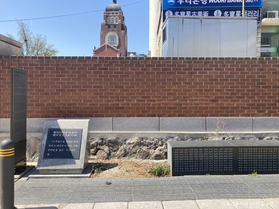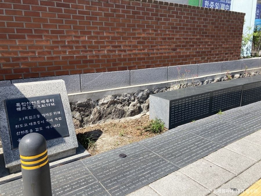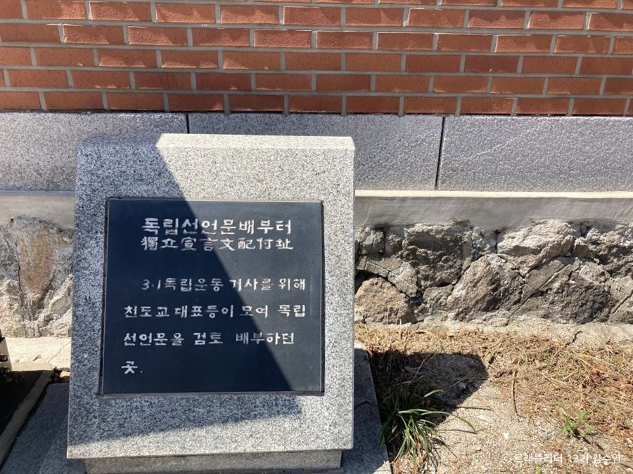 서울 종로구에 있는 운현궁에서 길 하나만 건너면 ‘독립선언문 배부 터’라고 적힌 작은 표지석이 눈에 들어온다. 1919년 3·1 운동 당시, 독립운동가들이 모여 독립선언문을 검토하고 배부했던 위치다. 지금도 표지석 앞에 민족대표 33인과 위안부 피해자 여성들의 이름을 기록한 돌이 자리해 보는 이들을 숙연하게 한다. 3.1 독립선언문은 이곳에서 멀지 않은 보성인쇄소에서 찍어낸 후 신축 중이던 천도교 대교당 마당(현재의 배부 터 바로 옆)에 갈무리해 두었다가 종교계, 학생 대표들에게 나누어주었다고 한다. 사람들이 무심하게 지나는 길옆에 자리해 그냥 지나치기 쉽지만, 나라의 독립을 위해 목숨을 걸고 싸웠던 1919년 봄의 자긍심을 느끼고 되돌아볼 수 있는 특별하고도 소중한 장소라 하겠다.
