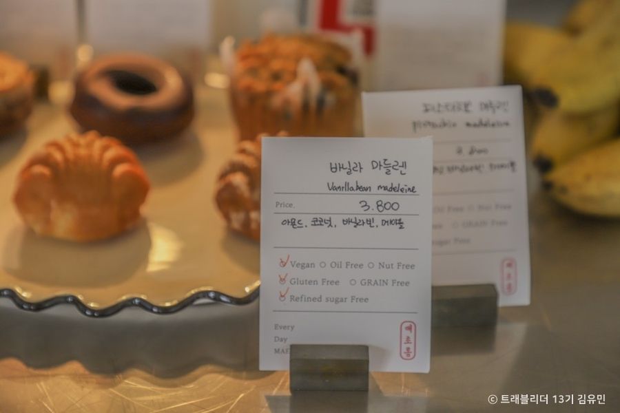매초롬은 비거니즘을 지향하는 부산 광안리의 베이커리카페로, 국내산 쌀과 유기농 현미를 베이스로 하는 쌀 베이커리를 만들고 있다. ‘매초롬하다’는 ‘젊고 건강하여 아름다운 태가 있다’는 뜻을 가진 순우리말이다. 매초롬의 제품들은 우유, 버터, 계란과 같은 동물성 성분은 물론 화학첨가제, GMO, 정제 설탕, 정제 밀가루, 방부제도 일절 사용하지 않는다. 제조공간에도 동물성 재료는 존재하지 않는 순 식물성 베이커리다. 베이커리류 메뉴표에는 첨가 표시도 되어있어 밀가루 음식을 먹지 못하거나 알레르기가 있는 이들은 미리 확인 가능하다. 제로 웨이스트를 실천하기 위해 매장 내에서 손수건을 제공하는가 하면, 소비자가 용기를 지참해서 포장 쓰레기를 줄이는 행동을 환영하는 무포장 가게이기도 하다.