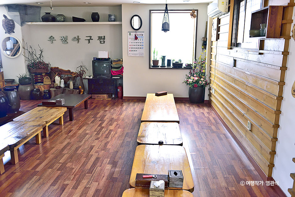 옛날우정아구찜은 매콤하고 쫄깃한 아귀찜 전문점으로 30년 넘게 이어져 온 전통의 깊은 맛으로 많은 사람들이 찾는다. 건아귀와 생아귀를 취향에 따라 선택할 수 있는데 이곳은 특히, 건아귀찜을 잘하는 식당이다. 참고로 건아귀찜은 마산 일대에서만 맛볼 수 있는 별미로 식감이 생아귀에 비해 훨씬 더 쫄깃한 게 특징이다. 아구와 함께 매운맛도 취향대로 고를 수 있다. 동치미와 함께 반찬으로 상추쌈이 오르는 것도 이곳만의 특징이다. 아귀찜 외에 미더덕찜도 인기다.