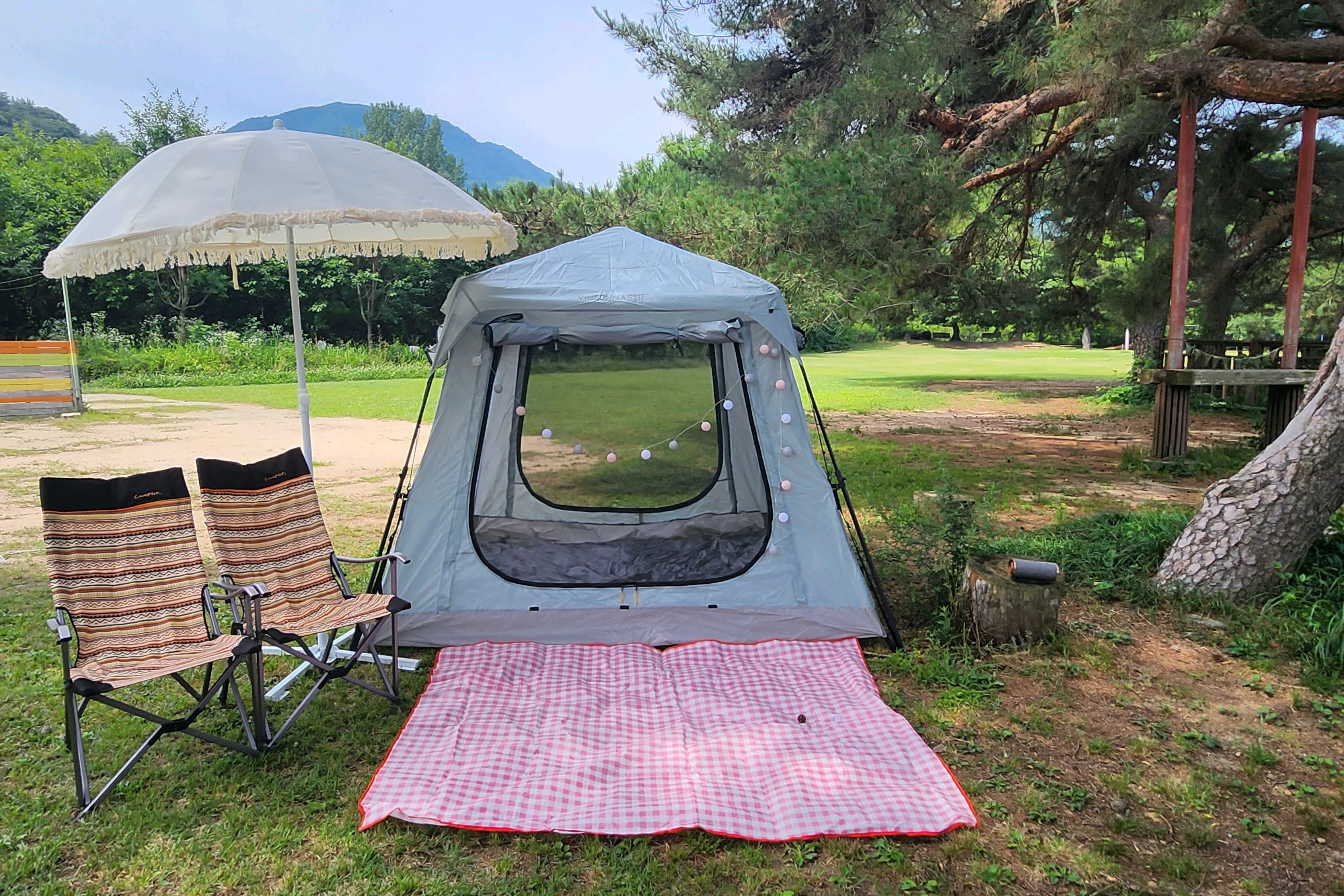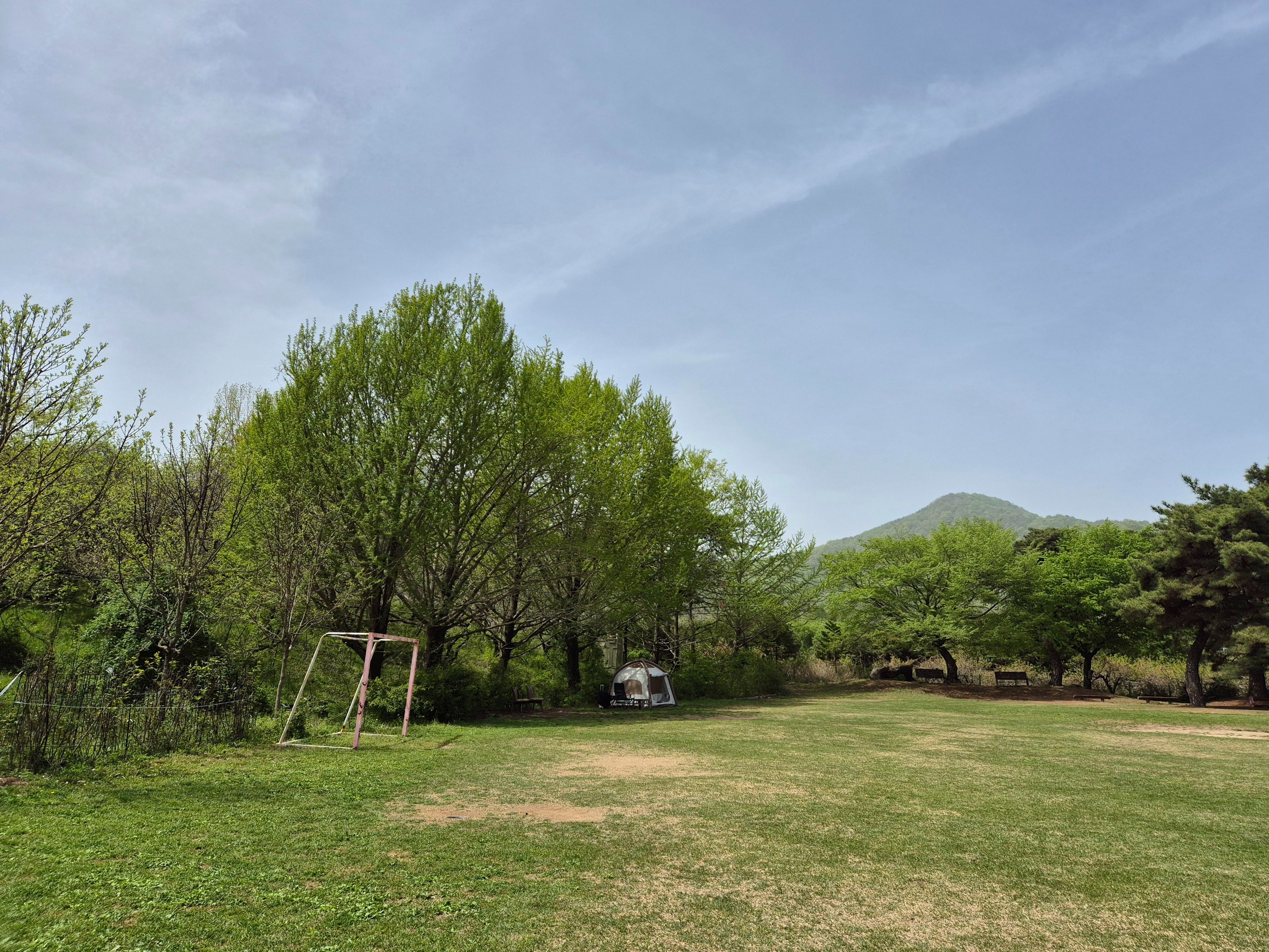 넓은 평지에 타프, 텐트 등 칠수있고 고기까지 구워먹을 수 있는 당일캠핑에 적합해요.