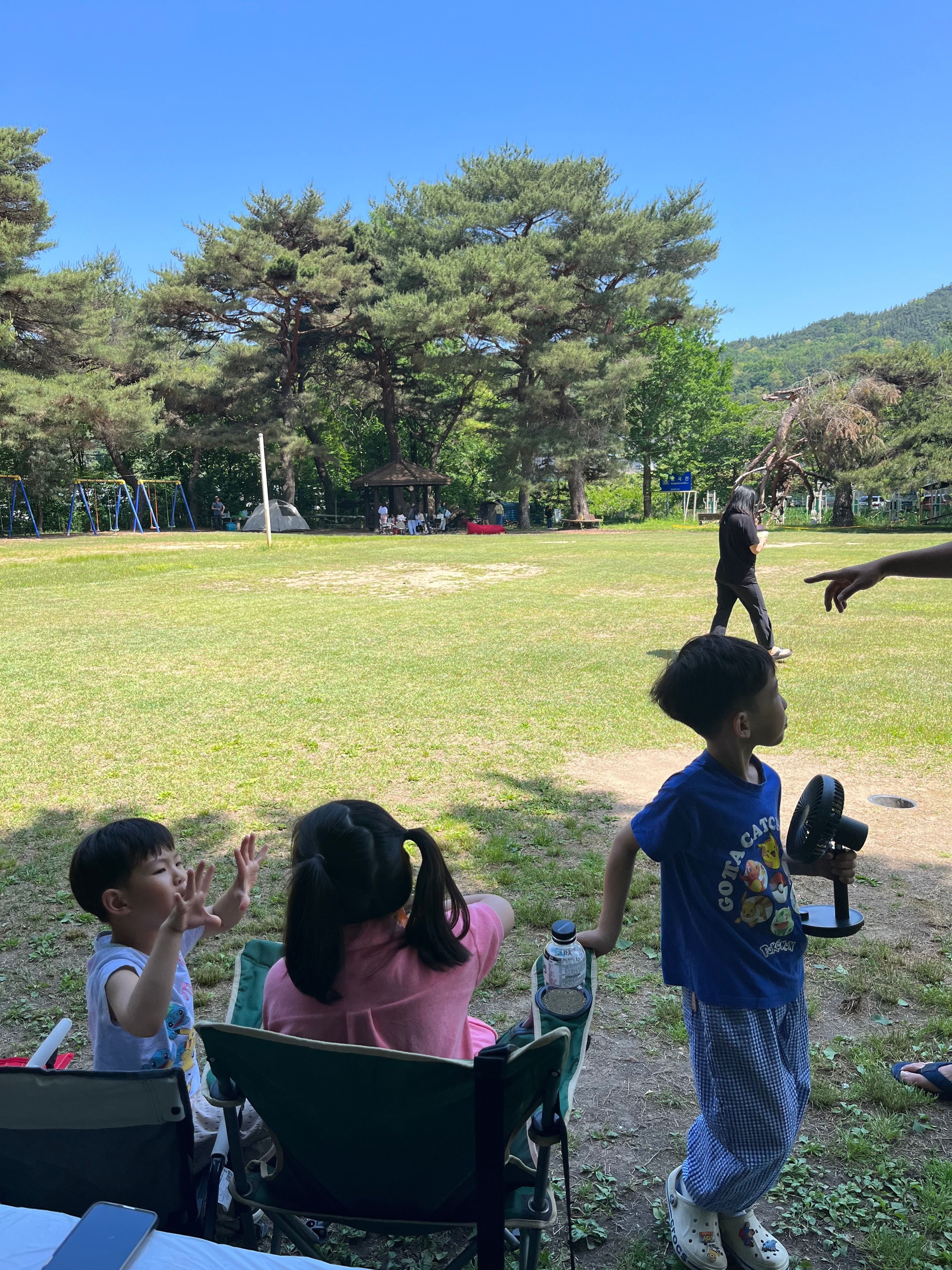 넓은 잔디에서 아이들놀기좋아요.배드민턴 챙겨가면좋을것같아요.