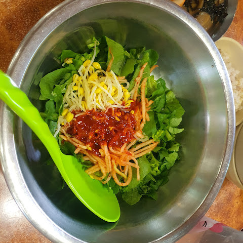 음식이 아주 빨리 나오고, 비빔밥은 야채가 잔뜩 들어있어서 좋아요. 묵사발도 묵이 잔뜩 들어있어요. 자극적이지 않은 속 편한 음식을 먹을 수 있는 멋쟁이 식당입니다