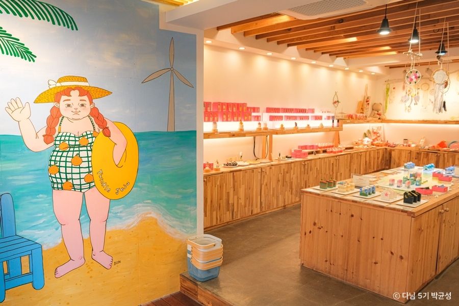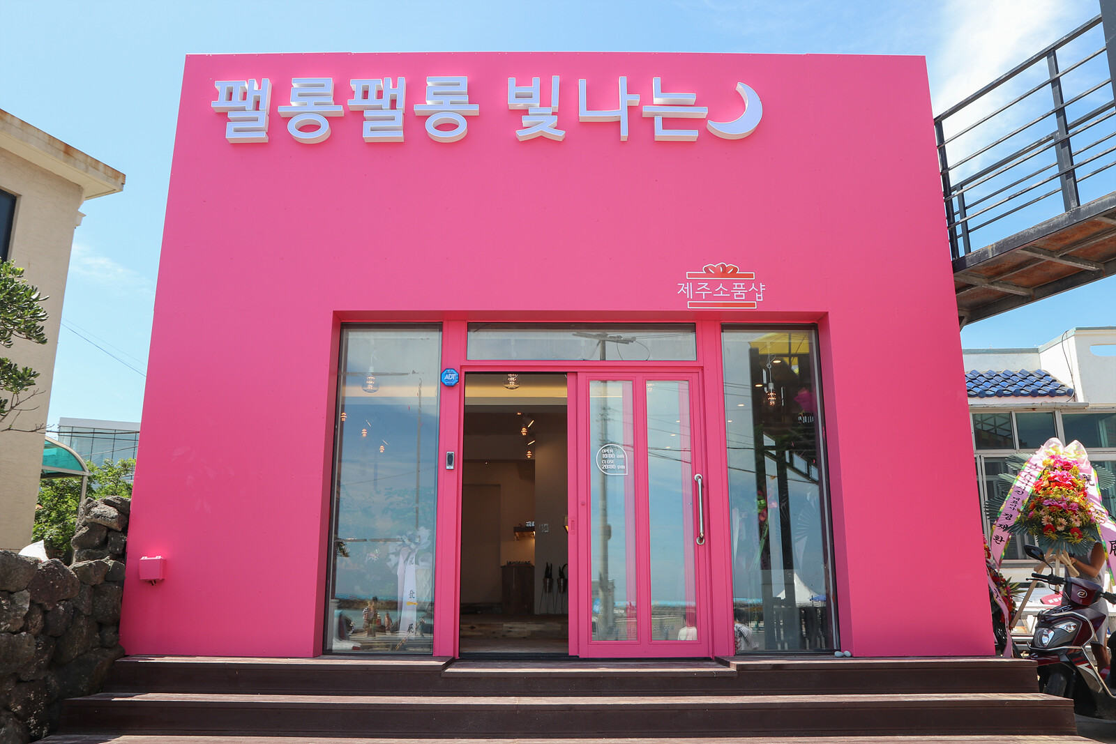 제주 애월읍에 있는 소품숍 ‘팰롱팰롱빛나는’은 사랑스러운 분홍색 외관부터 눈길을 사로잡는다. 팰롱팰롱은 ‘반짝반짝’의 제주말이다. 이곳에서는 제주 여행을 특별하게 기억할 수 있는 다양한 종류의 기념품과 소품을 판매한다. 특히 직접 만든 비누가 대표 상품인데 한라산과 돌하르방, 한라봉처럼 제주 하면 떠오르는 풍경이나 특산품을 모양 그대로 만들어 색다른 기념품이 된다. 그뿐만 아니라 ‘월정 밤바다’, ‘그해 여름 함덕’처럼 이곳만의 감성을 가득 담은 디자인도 인상적이다. 또 수제비누는 직접 향을 맡아보거나 테스터를 사용해 볼 수 있어 고르는데 부담감이 없다.