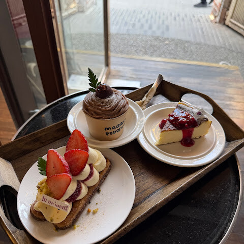분위기가 좋은 카페에서, 쇼핑 사이의 안락한 시간을 보낼 수 있었습니다. 딸기의 티라미수도 무화과의 티라미수도 매우 맛있었습니다. 커피를 뜨겁게 해 주었으면 한다고 전했는데, 쾌적하게 리퀘스트에 응해 주었던 것도 좋았습니다.