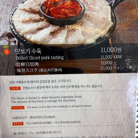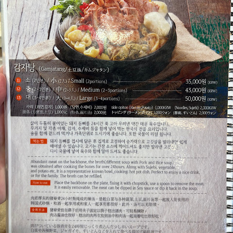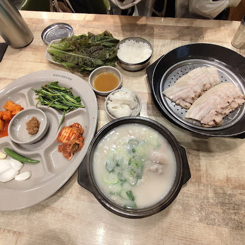 위치가 좋고, 한국 전통 돼지고기/소시지 탕도 잘 준비돼 있어요. 서비스도 정말 빠르고 좋았어요.