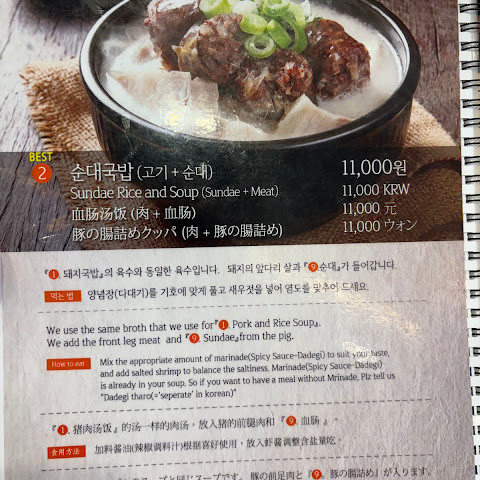 식사분위기 좋고, 웨이터분들도 친절하고, 돼지고기국밥, 블러드소시지, 반찬 모두 맛있어요(반찬은 리필가능)