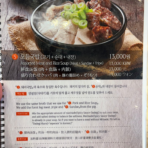 이 식당은 한국에 지점이 여러 개 있습니다. 돼지국밥은 정말 맛있습니다. 새우장, 소금, 후추를 더하면 국물이 더욱 깊어집니다. 삼겹살만 주문했는데 조금 오래돼서 조금 실망스러웠습니다.