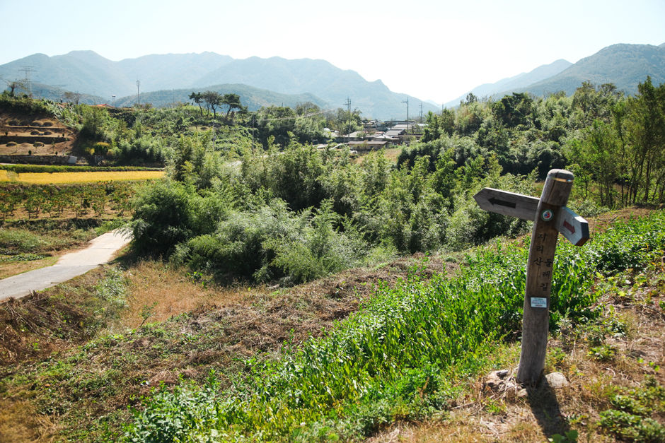 지리산 둘레길 18코스는 18.4km다. 오미마을부터 난동마을까지 이어진다. 난이도는 하급이다. 구간은 서시천과 섬진강을 따라 걷는 길이다. 제방길을 걷다 보면 지리산과 인근 들녘이 어우러지는 조망을 만날 수 있다. 특히 여름이면 제방길에 펼쳐진 원추리꽃이 장관을 이룬다. 오미마을은 금환락지로 유명한 마을로 조선 시대 가옥인 운조루와 일제강점기의 가옥인 곡전재가 있다. 백두대간이 시작되는 곳 중 하나인 용두마을에는 일본강점기의 울분과 저항의 흔적인 용호정이 있다.