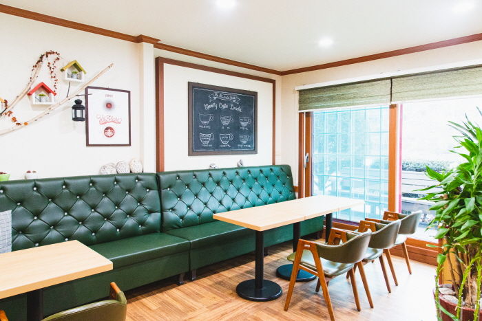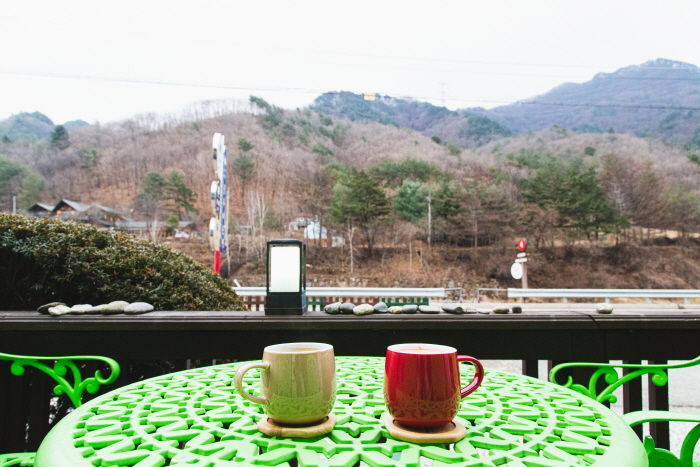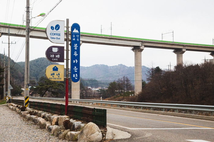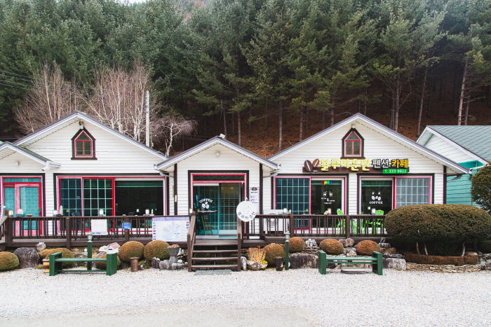 펜션에서 운영하는 카페 블루마운틴에서는 갓 볶아 내린 원두커피를 즐길 수 있다. 펜션도 같이 운영중이라 바비큐도 즐길수있는 공간이다. 황태해장국으로 식사도 가능해 식사와 디저트가 한공간에 있는 맛집이다.