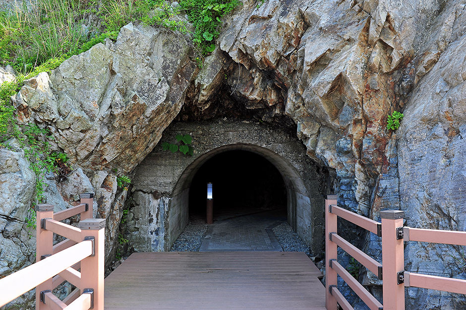 2차 세계대전 말에 일본군은 전력이 급강하하자 부산과 주변 해안에 미군 상륙작전을 대비하기 위한 방어시설을 구축하였는데 가덕도 대항마을의 인공동굴도 이와 같은 정세에서 조성된 것으로 보인다. 가덕도 대항 인공동굴은 현재 10여 개 정도 발견되었으며 탄광 노동자들을 데려와 만들었다고 전해진다. 형태는 I자, T자, L자형 동굴과 연결 복식 동굴이 있고, 내부 통로가 십자형으로 얽혀 있을 정도로 긴 동굴도 있다. 동굴 내부에 당시 상황을 이해하기 쉽게 조형물로 표현해 놓아 가슴 아픈 역사의 흔적을 되짚어 볼 수 장소이다.