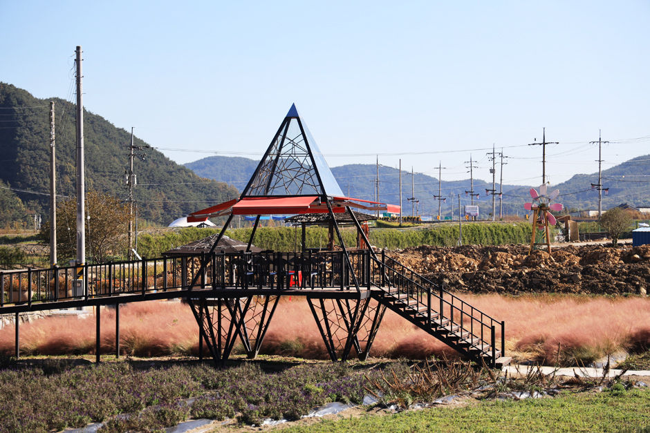 북천역에서 차로 5분 정도 거리에 치유 카페 겸 허브체험장인 알프스허브리아가 있다. 허브농원과 전시장, 허브를 활용하여 여러 가지 제품을 만들어보는 체험도 운영 중이다. 카페에는 야외족욕장도 있고, 허브로 만든 수제비 누나 허브 주머니 등 여러 가지 허브물품을 판매한다. 카페에서 음료와 족욕료를 주문하고 즐길 수 있다. 근처에는 핑크 뮬리, 코스모스, 소국화 등이 가득한 꽃밭도 있어 계절마다 꽃 축제가 열리고 있다.