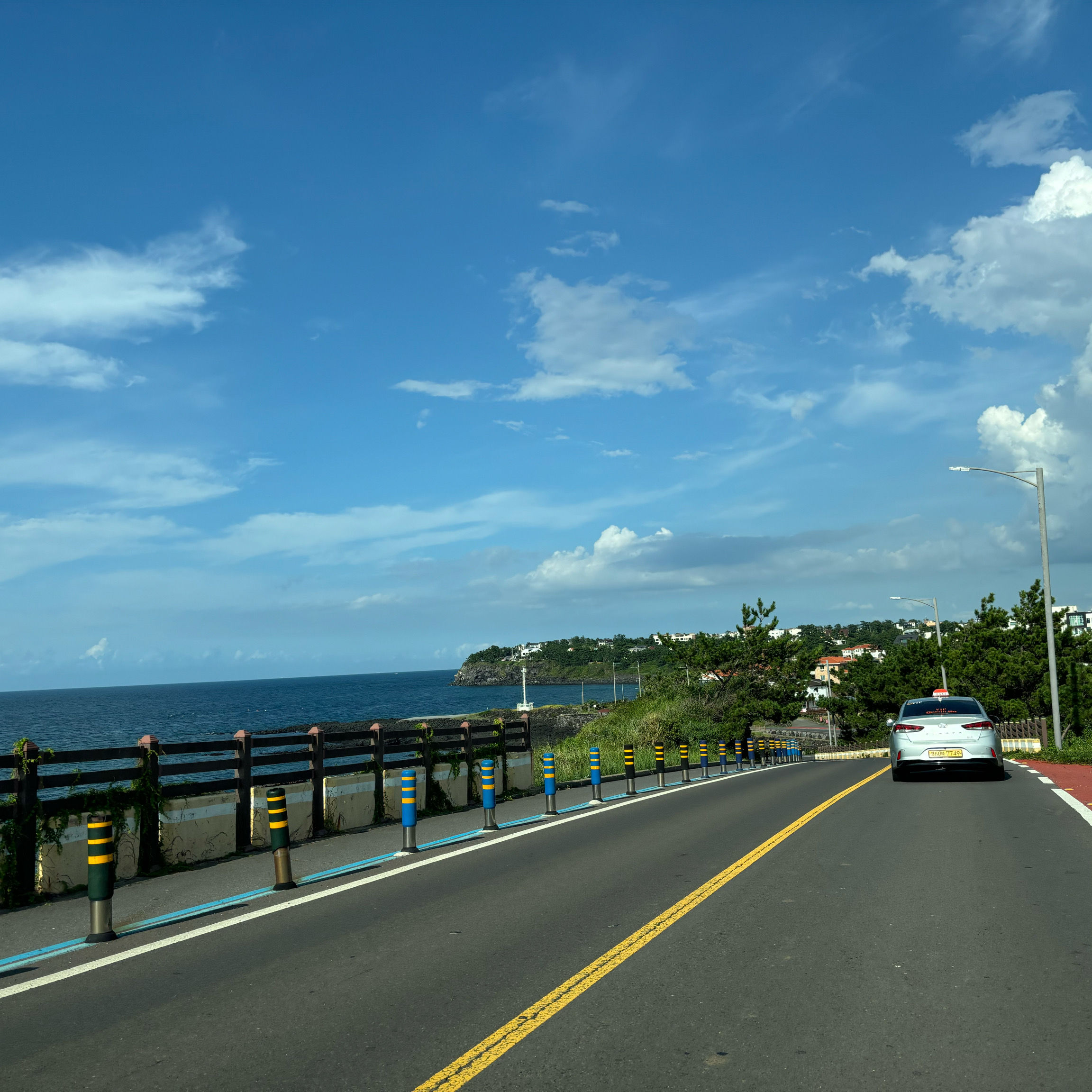 해안도로중 가장 좋은 곳 같아요. 애월해안도로에서 한라산소갈비찜 맛있게 먹고 드라이브했는데 완전 최고 여행 코스였습니다. 중간에 카페들도 많고 길 끝에 스벅도 있어서 드라이브 끝도 좋아요. 바닷가 바로 옆에서 드라이브 할 수 있어서 좋고, 시원하고, 도로도 잘 되어 있어요. 산책도 가능하고, 자전거 타시는 분들도 많았어요. 가끔 돌고래가 나온다고 해요. 바람 많이 부니 치마 입으시면 조심하시고, 모자 날라가지 않게 조심하세요^^ 기분 좋은 산책입니다^^