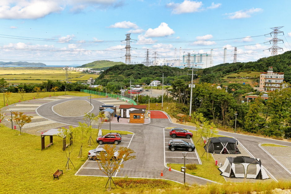 왜목오토캠핑장은 충청남도 당진시 석문면 왜목항 인근에 자리했다. 삼봉사거리에서 ‘대호방조제’ 방면으로 좌회전해 약 4km를 달리다가 ‘왜목길’ 방면으로 우회전하면 캠핑장에 닿는다. 언덕을 올라 캠핑장 입구에 들어서면 서해 바다가 바로 보이는 널따란 마당에 자동차와 텐트, 카라반이 위치해 있다. 약 15,152㎡(약 4,583평)의 부지에는 일반캠핑이 가능한 7면의 사이트와 14면의 개인 카라반 사이트가 있다. 모든 사이트는 파쇄석으로 되어있다. 각 사이트에는 전기시설과 소화기가 구비되어 있으며, 남녀 화장실 각 1개소, 남녀 샤워실 각 1개소, 개수대 1개소가 있다. 여름에는 근처에 있는 왜목마을 해수욕장에서 물놀이를 즐기기 좋다. 저녁이 되면 왜목마을 해수욕장으로 떨어지는 아름다운 일몰을 감상할 수 있어 캠핑의 낭만을 더한다. 캠핑장은 사계절 이용이 가능하다. 캠핑장 주변에는 왜목마을, 삽교함상공원, 솔뫼성지 등이 있어 연계관광이 용이하다.